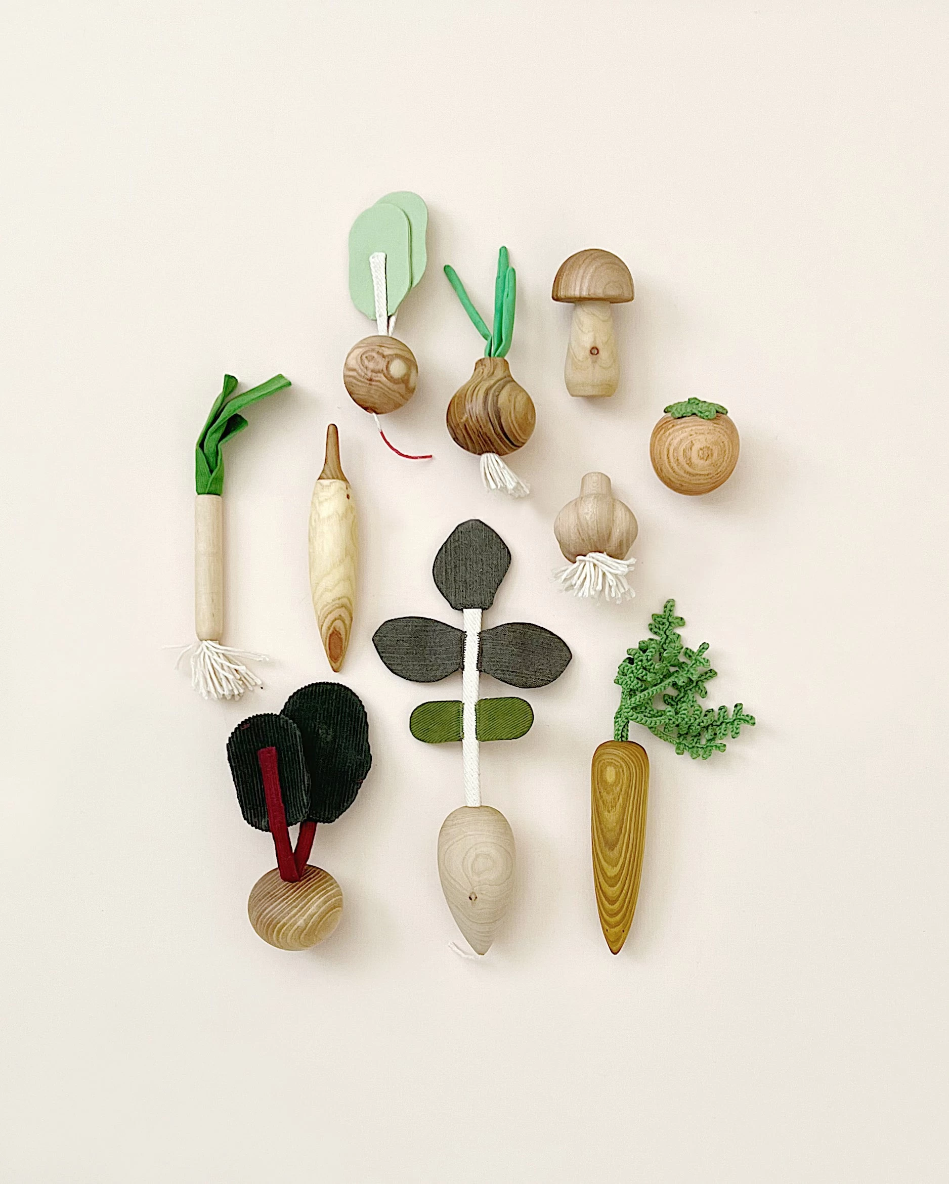 We’ve teamed up with an artisan to create these darling wooden vegetables.
