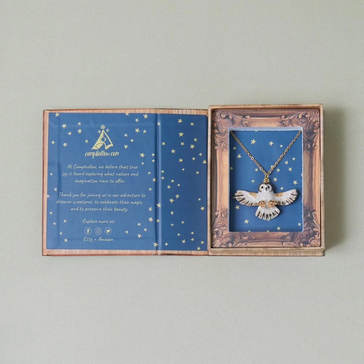 Capture the mystique of the night with our limited-edition Barn Owl Necklace! This heirloom-quality porcelain pendant features a hand-painted barn owl, capturing the wisdom and magic of this elusive bird. Strung on a delicate chain, this necklace is a versatile and captivating addition to any ensemble. Due to the handmade nature of this product, each piece is truly one-of-a-kind. Perfect for bird enthusiasts, collectors, or anyone who appreciates the blend of fashion, artistry, and natural wonder.