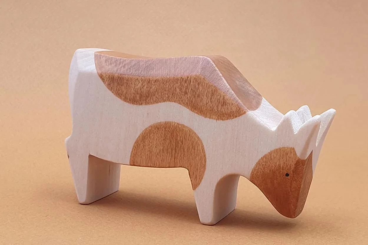 Spotted Black Cow Eating: 8.2 × 3 × 10.5cm