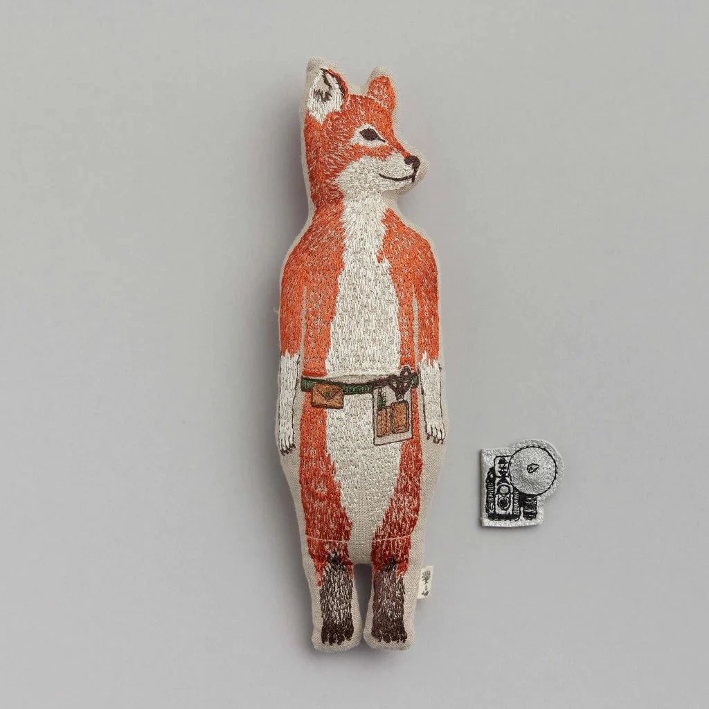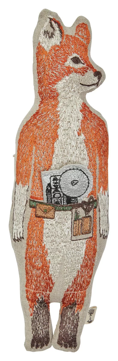 When Fox is not riding his bike to the field of strawberries for his favorite snack, he may be beachcombing and taking pictures of the sea shore. Back in his driftwood den, he makes paper sculptures drawn from the day’s events and comes up with new practical jokes.