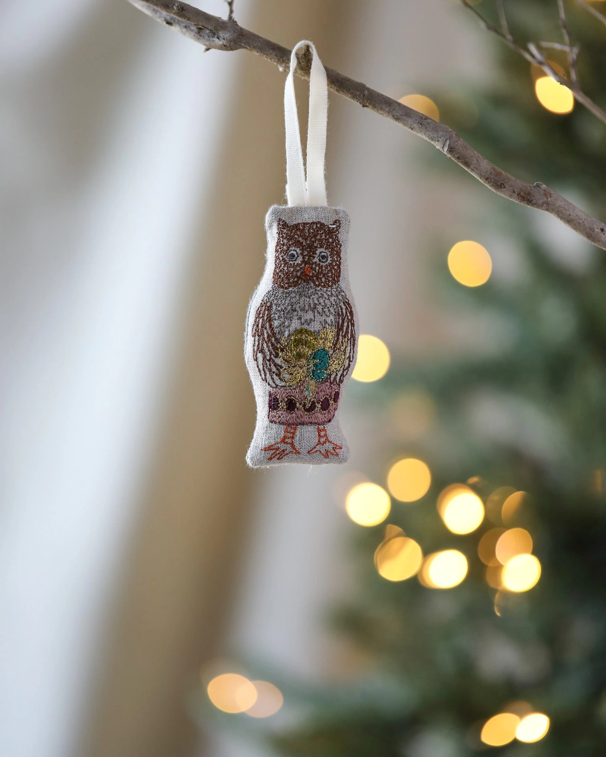 Owl presents a gift festooned with Christmas ornaments and gold tinsel. Collect all four of our Animals with Presents ornaments for a festive forest theme.