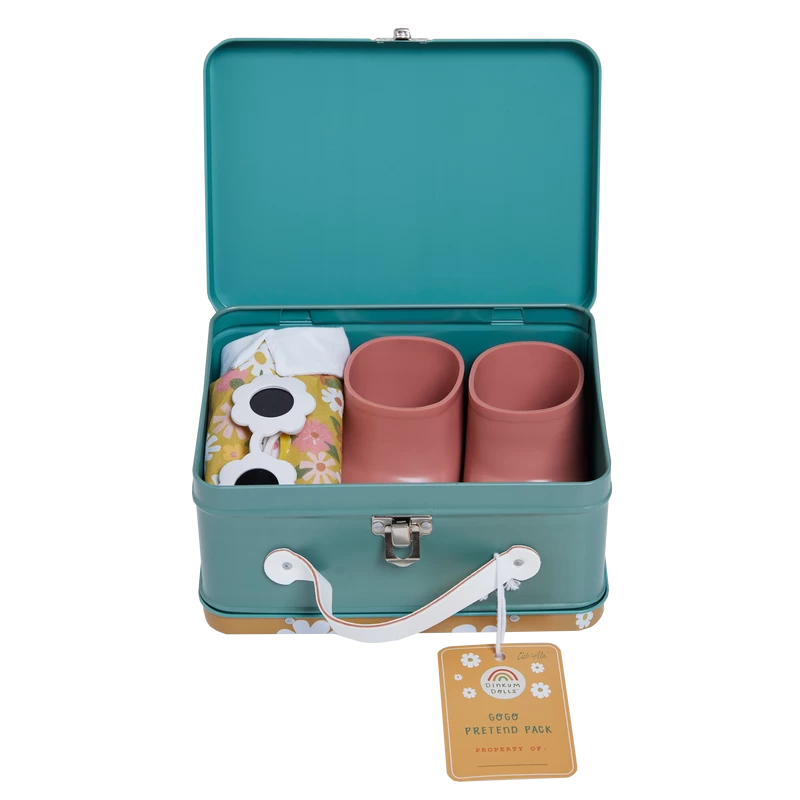 Extend the world of Dinkum Doll play with this Pretend Pack for lots of dance-filled, groovy adventures! Packaged in a collectible printed metal tin.