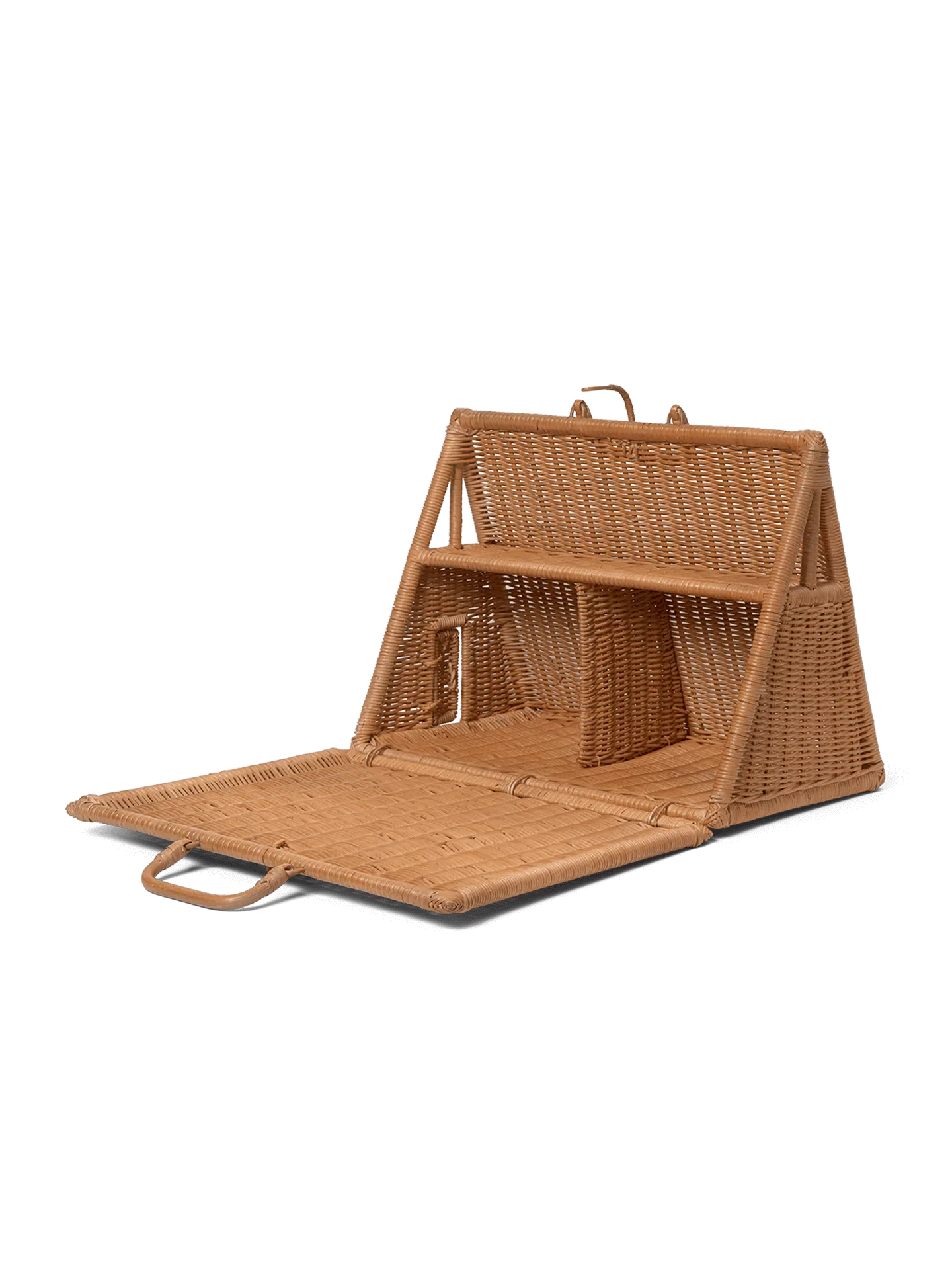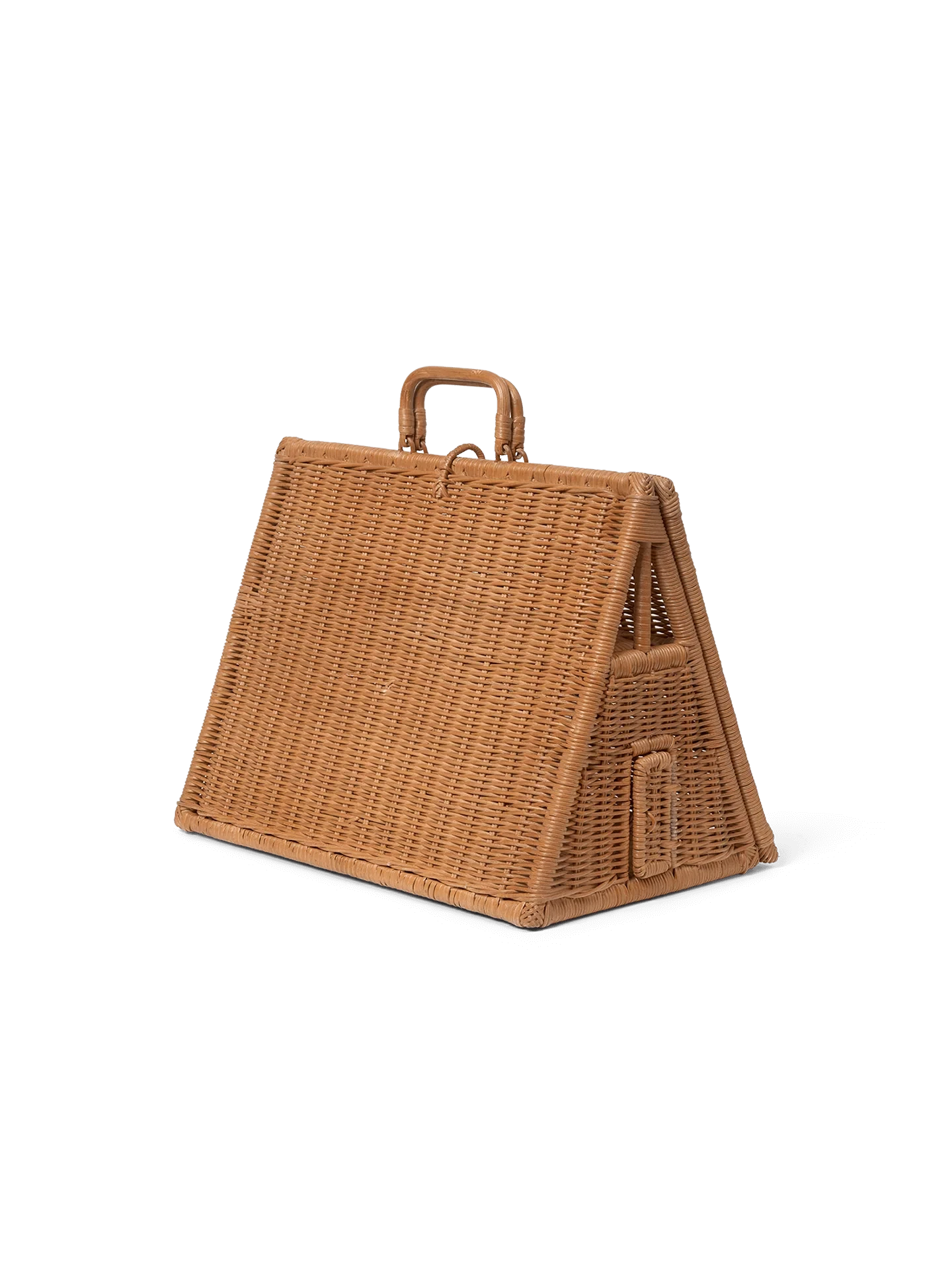 Intriguing for the youngest architecture fans, the Braided A-House is based on the characteristics of an archetype A-house. The house is made from braided rattan and functions as a small dollhouse with a door leading inside and little rooms to decorate. When closed, the braided house can be carried as a bag that will help your little one transport their toys from one fairytale adventure to the next.