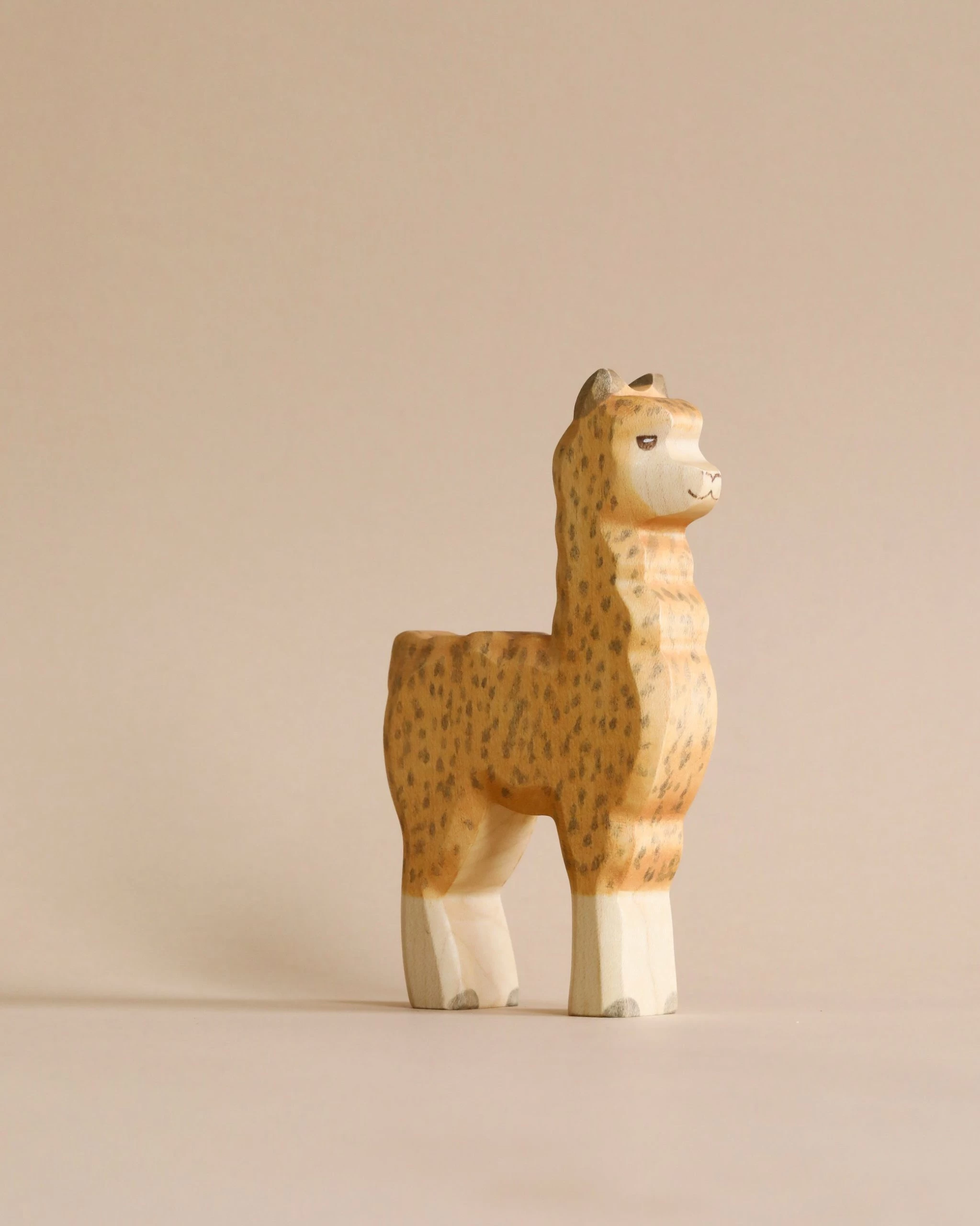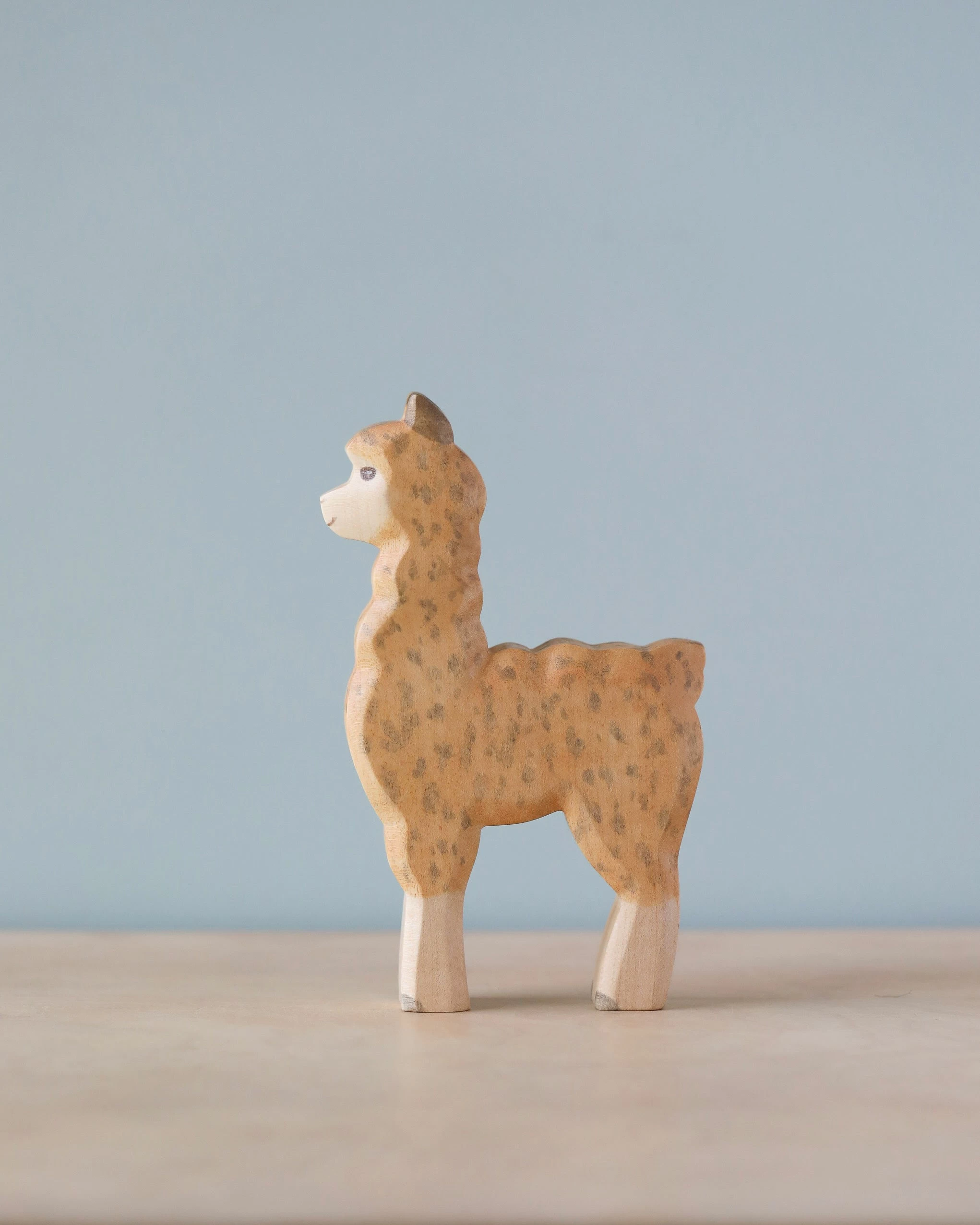 The beautiful figures are made by a small business in the country Georgia, which has been producing high-quality and educationally valuable wooden toys since 1997. With much love and dedication, toys that capture the soul of animals and people have been produced there for over 35 years. Only local woods of the highest quality are used. The edges are rounded and finely sanded in several steps so that they are pleasant and soft to the touch. Finally, they are painted with natural dyes (Biofa) and finally polished with high-quality oil. The workshop is located in a small community with fair pay and a good and friendly working atmosphere. This is how sustainable toys are created that are loved and passed on from generation to generation. Each toy is simple enough to inspire imaginative play, but accurate enough to be realistic. In this way, children’s sense of beauty and imagination is encouraged.