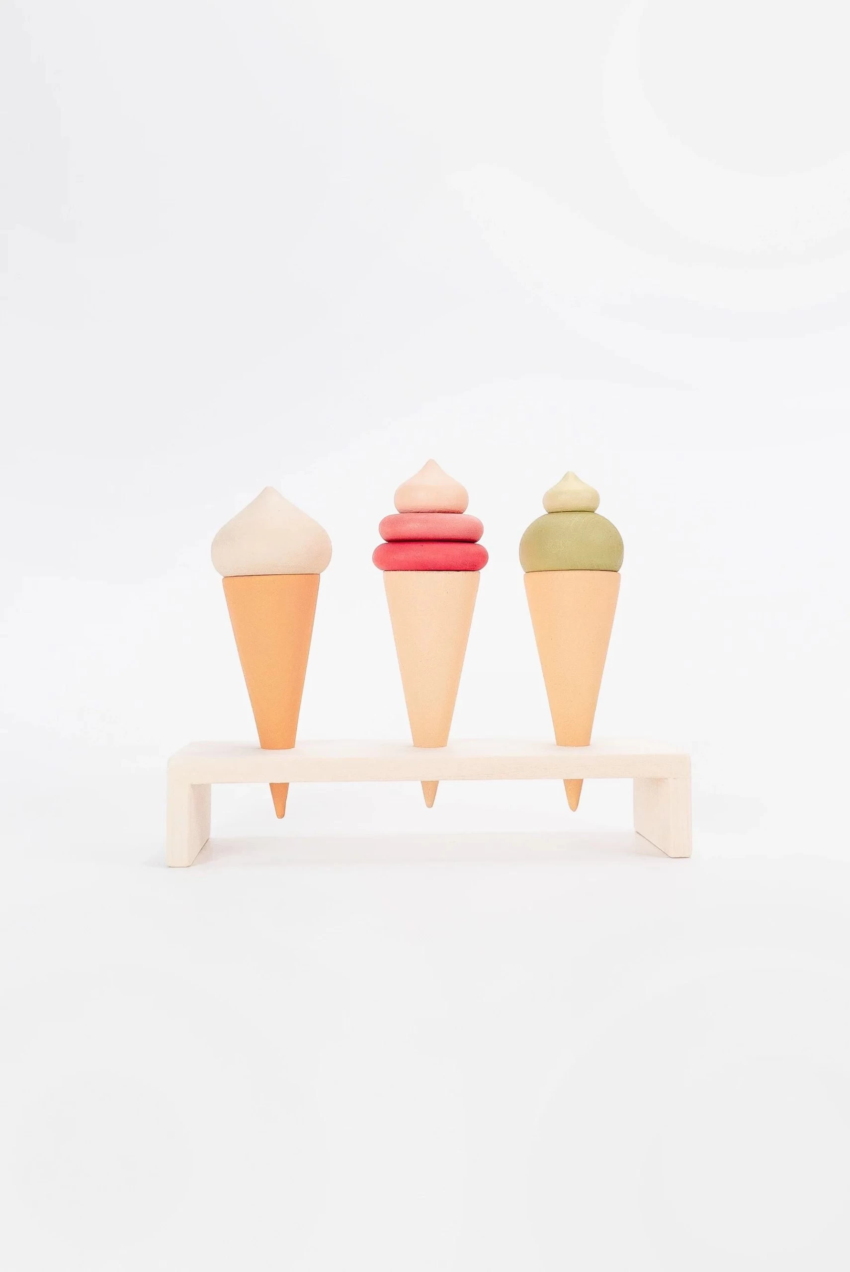 The set includes a stand, 3 ice cream cones.