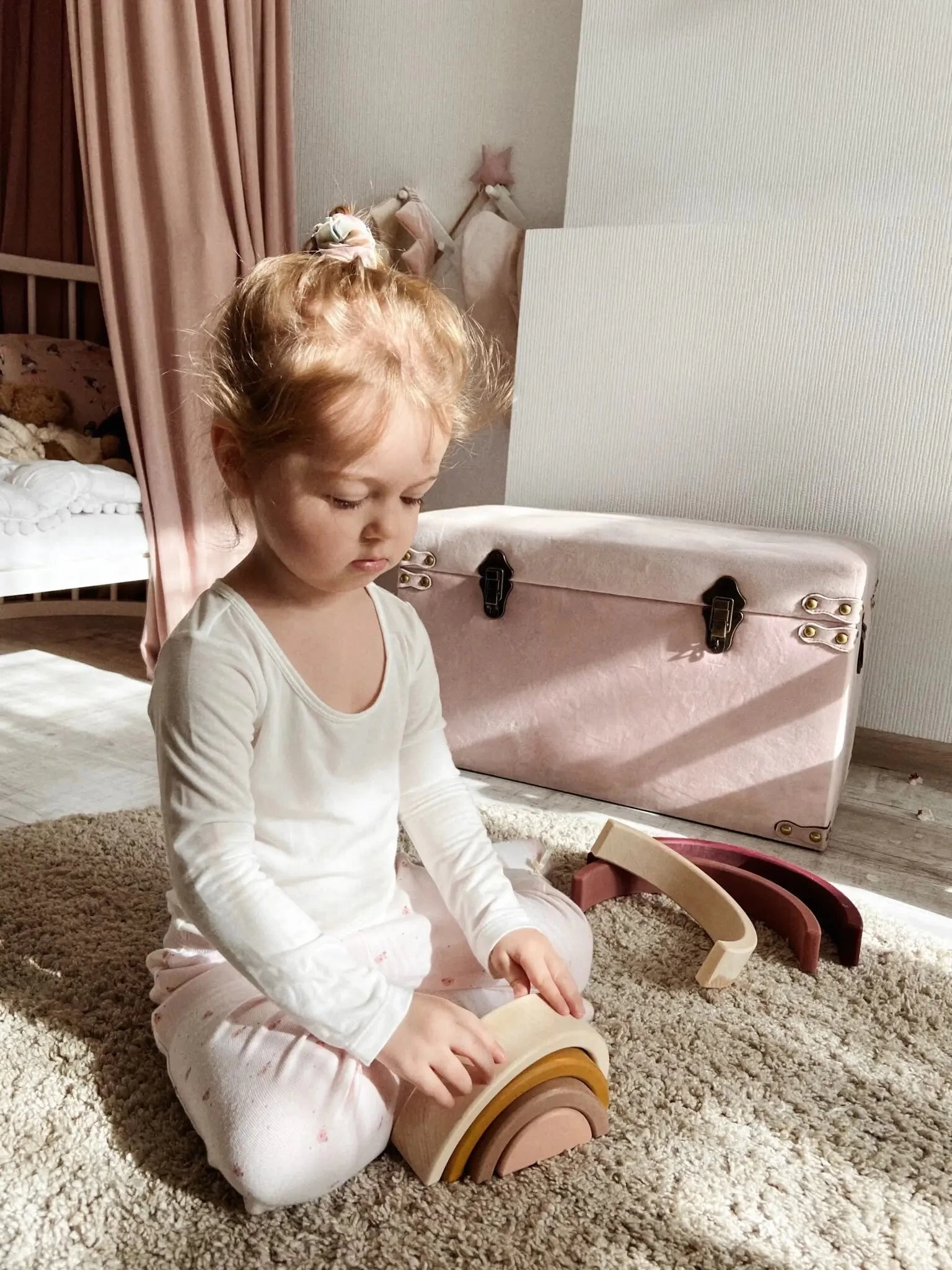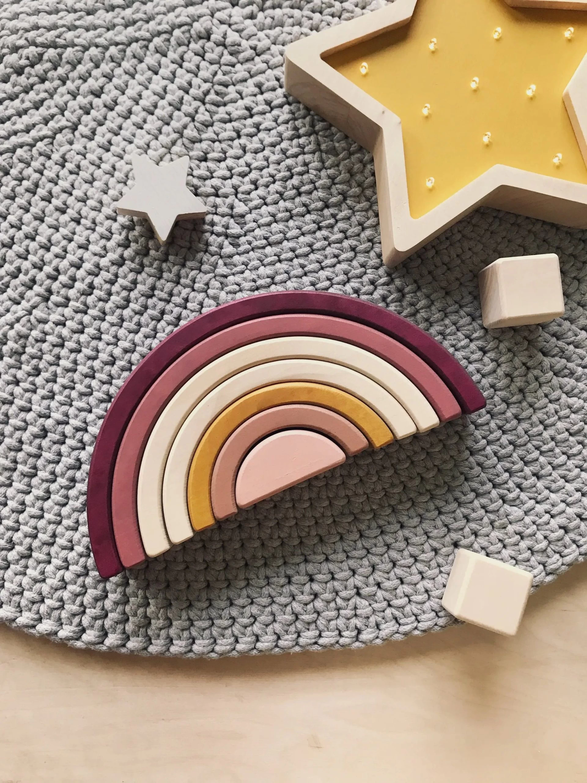 Handmade by Sabo Concept in Ukraine and painted with non-toxic, water-based paint. This stacking toy is great for open ended play.
