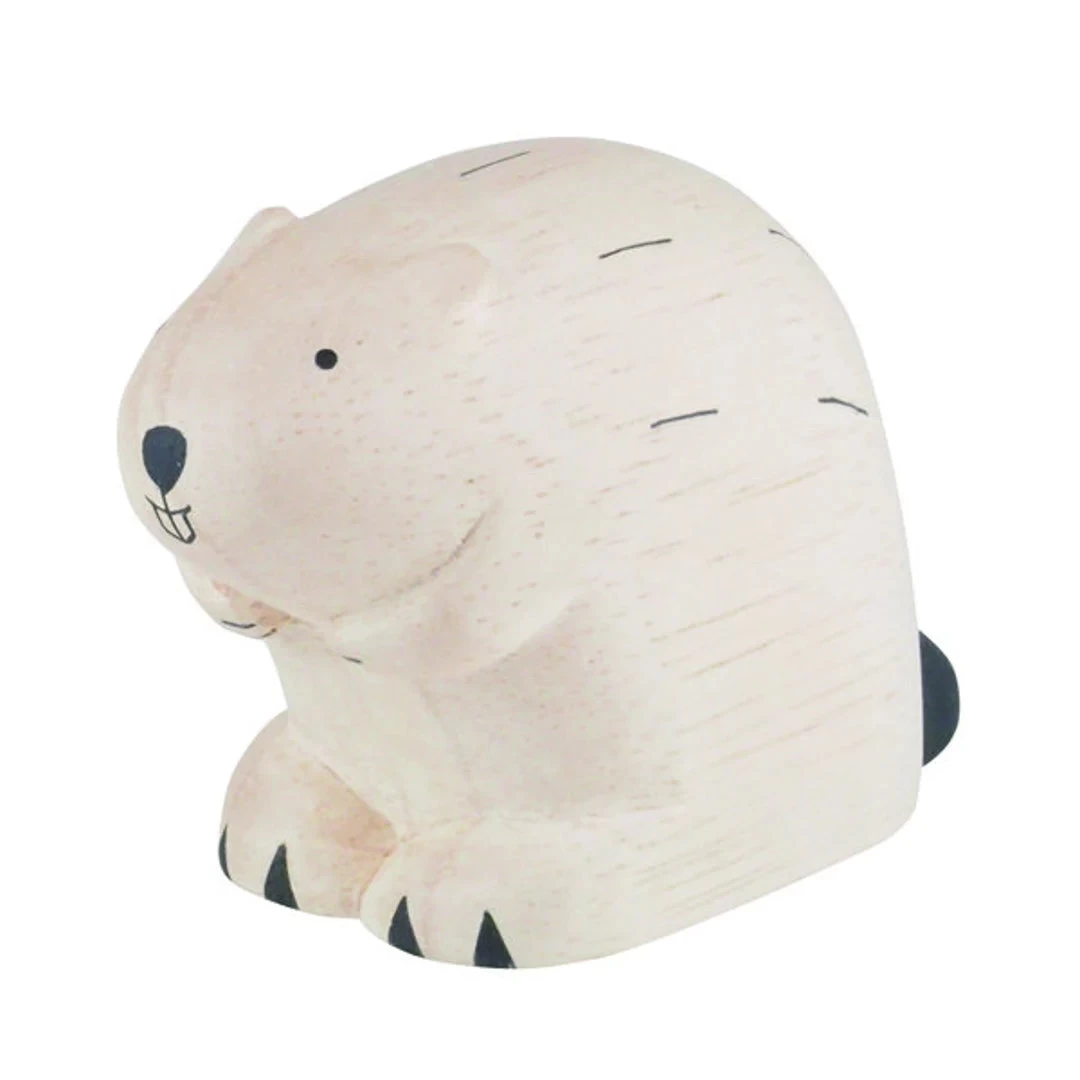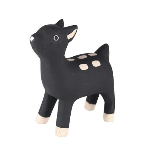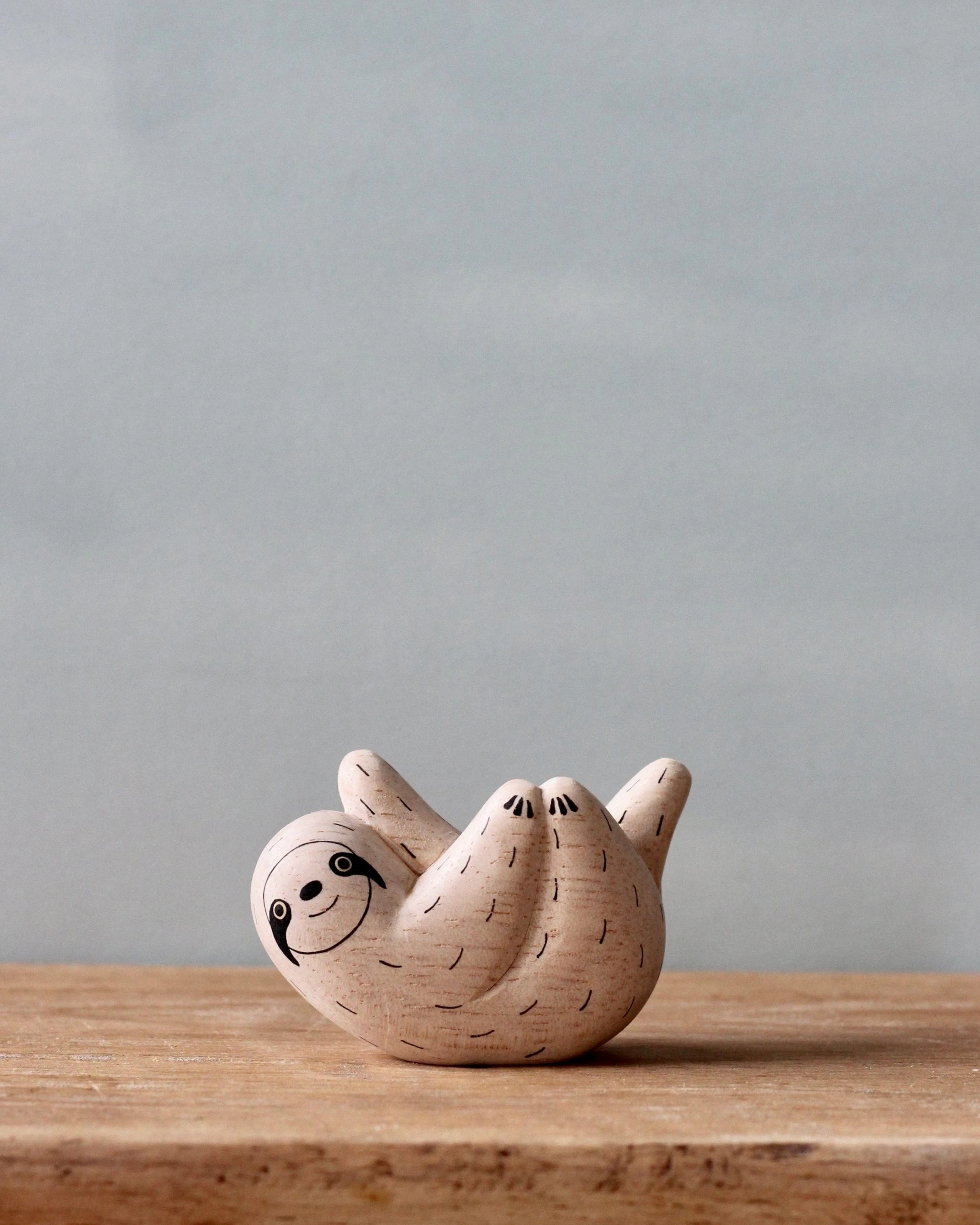 Each animal is hand carved from a soft light wood and then hand-painted with the sweetest expressions and patterns. Due to their handcrafted nature, each animal is slightly different.