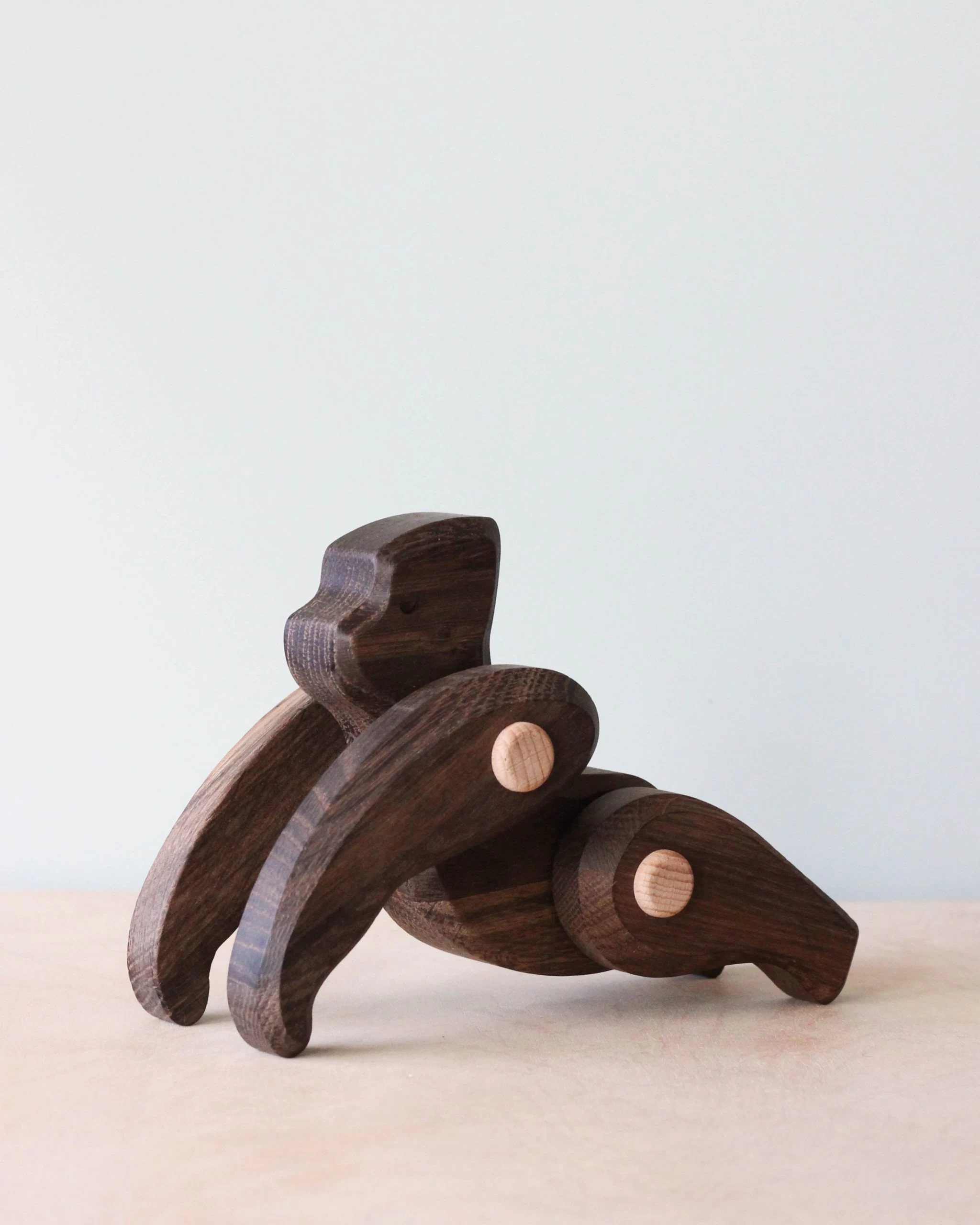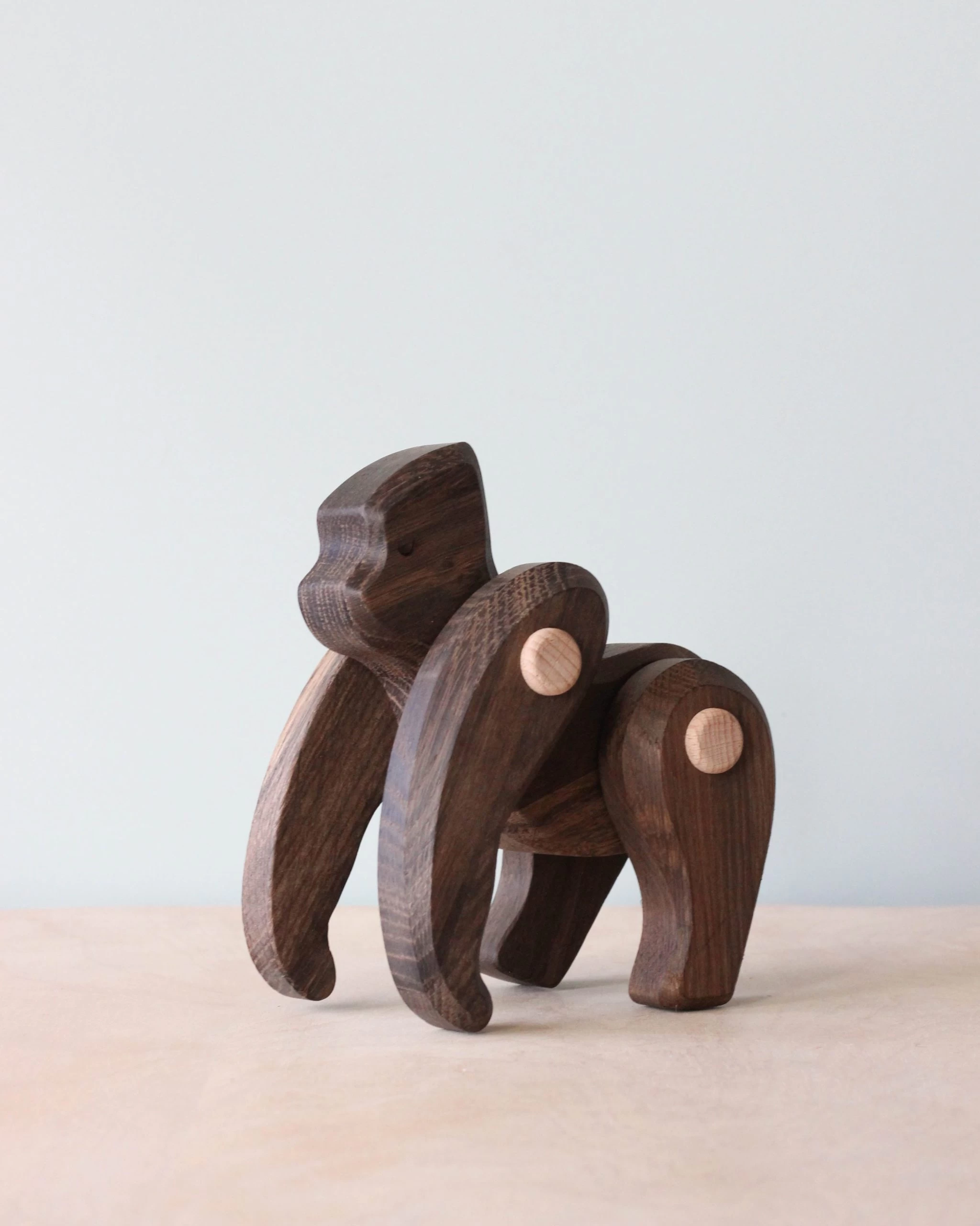 This adorable wooden gorilla is lightweight and easy to play with. The limbs can be moved so your child can imitate the real movements of this endangered animal. Made for ages 1.5+ years and up. Not a teething toy.