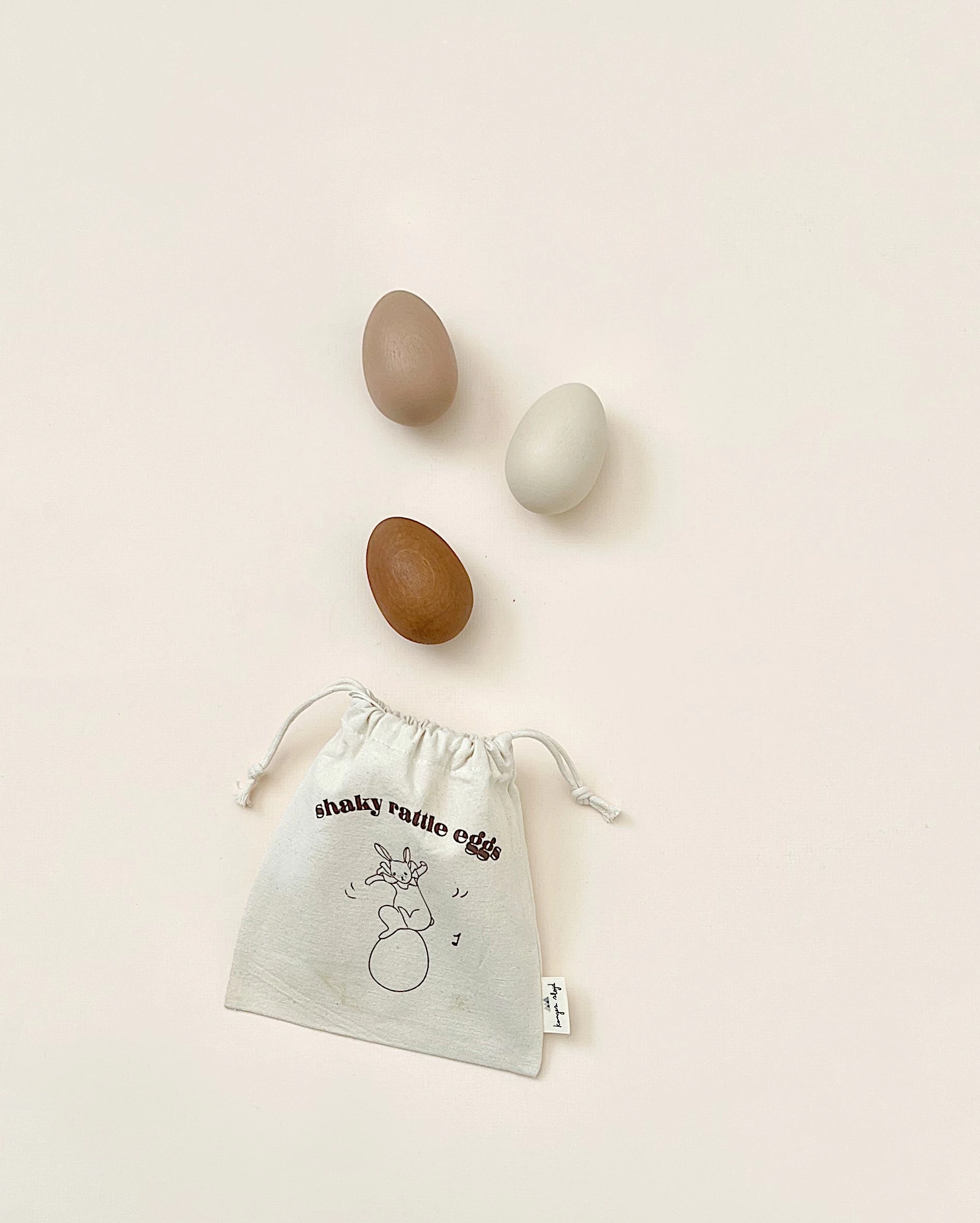These little wooden rattle eggs fit right in the palm of a hand for a comfortable grip