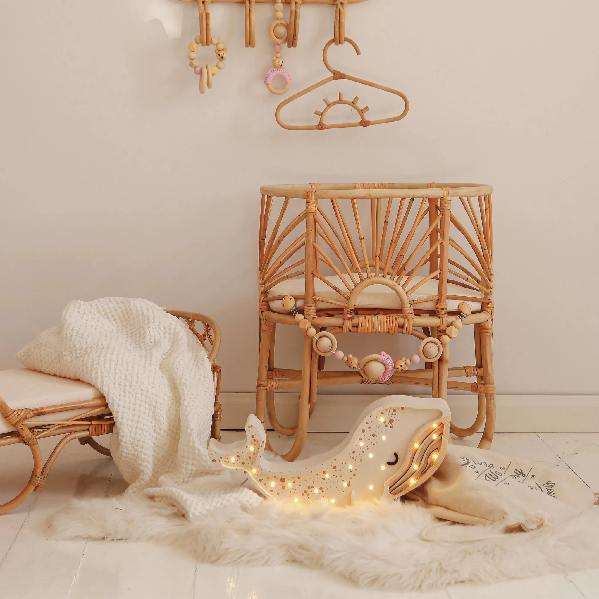 This high-quality children’s night light is handmade from 100% natural pinewood, making it as strong and durable as it is beautiful. Our adorable Little Lights Whale Lamp is bound to inspire awe and breach your little one’s imagination on sight. View one up close by ordering today!