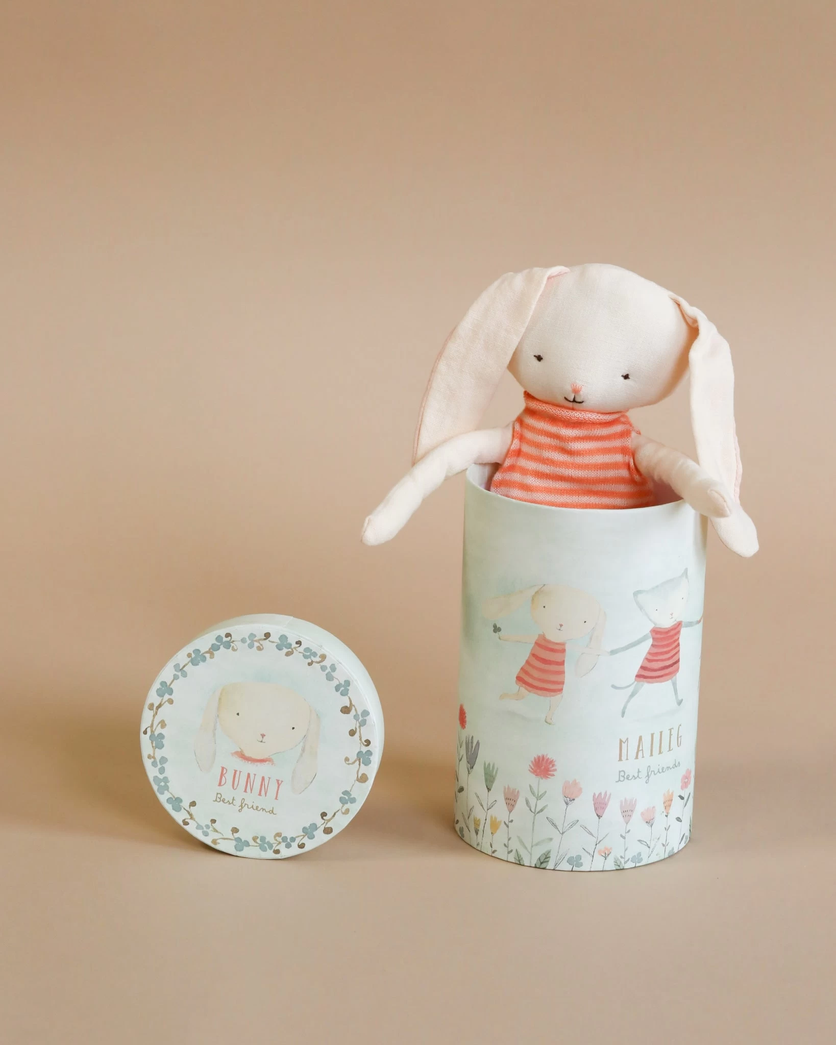 Every bunny needs a best friend. Our bunny will hop out of the beautiful gift box to greet you.