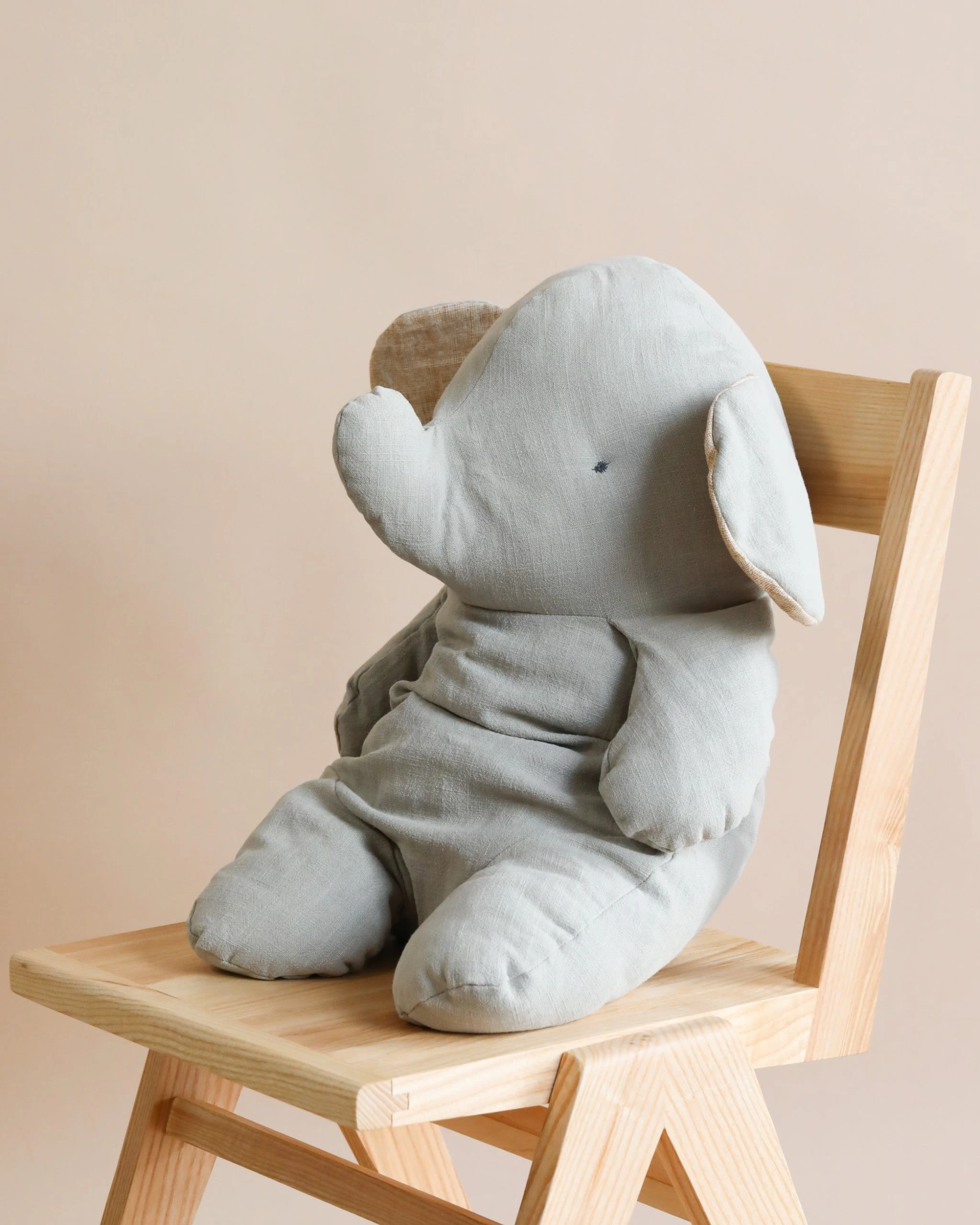 Safari friends are made of the softest fabric and comes in great colors. They can sit by themselves and are just waiting for you to come and give them a hug! Meet our big elephant! This big stuffie can’t wait for cuddles and adventures.