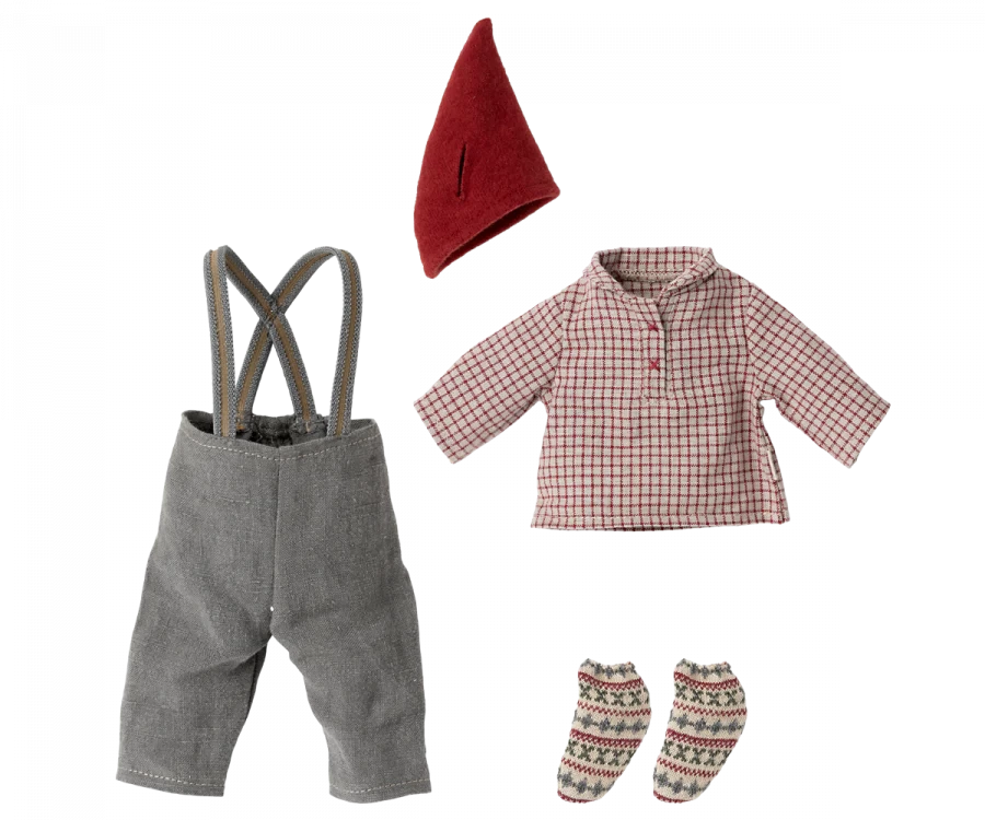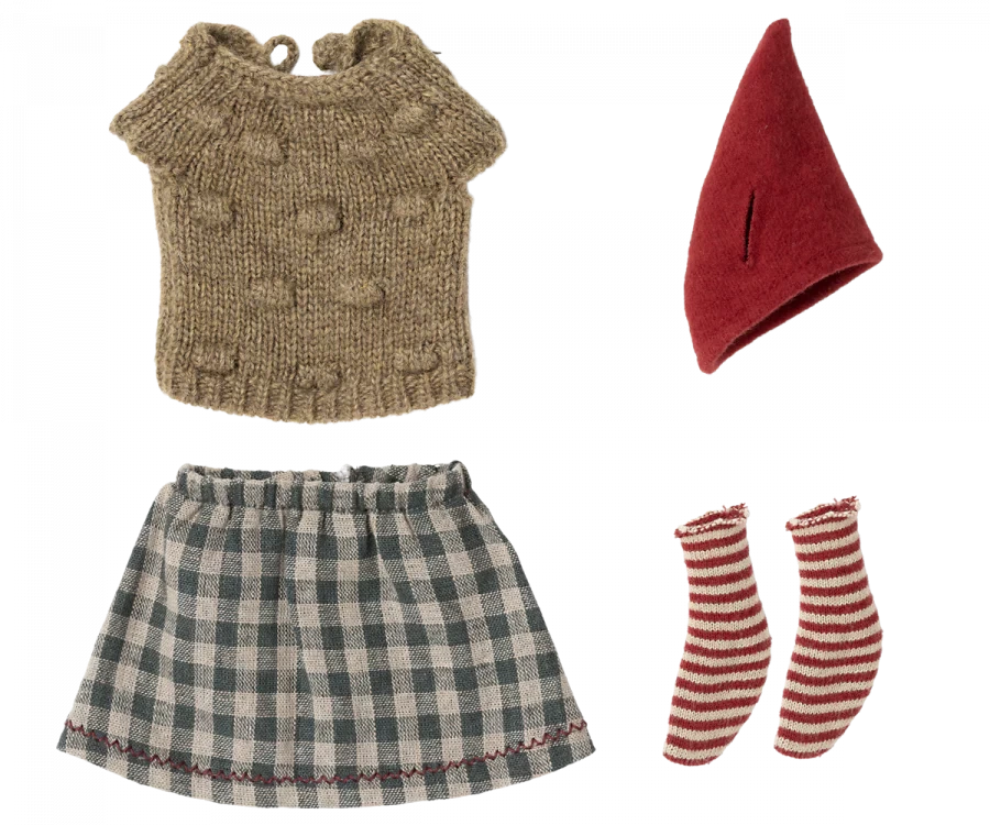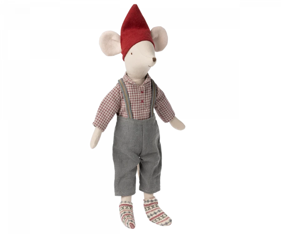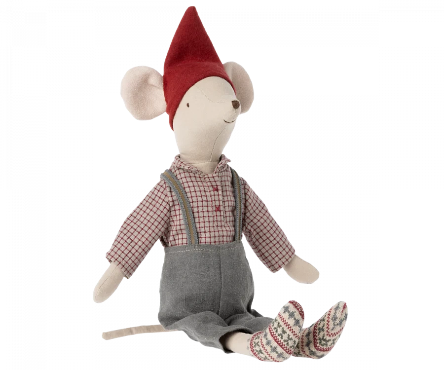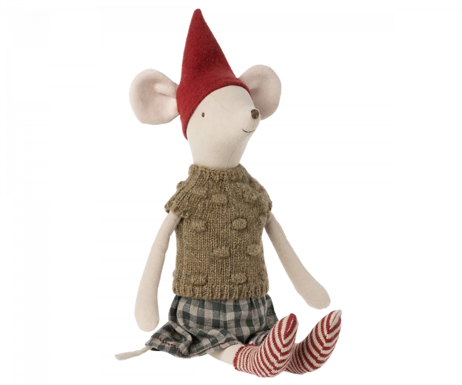 A medium size mouse dressed in cozy Christmas clothes ready to celebrate the wonderful days of Christmas.