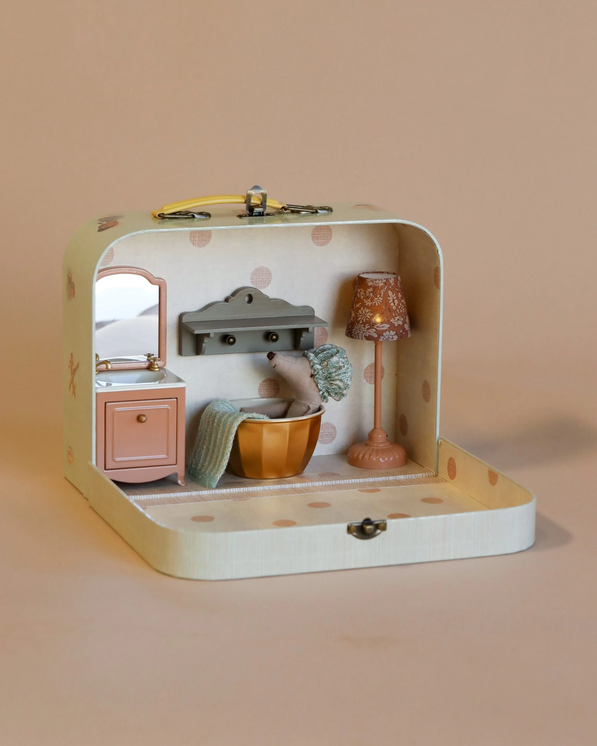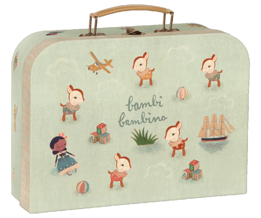 This darling suitcase with adorable Maileg print is a must have for all children that want to take their mini dollhouse to go.