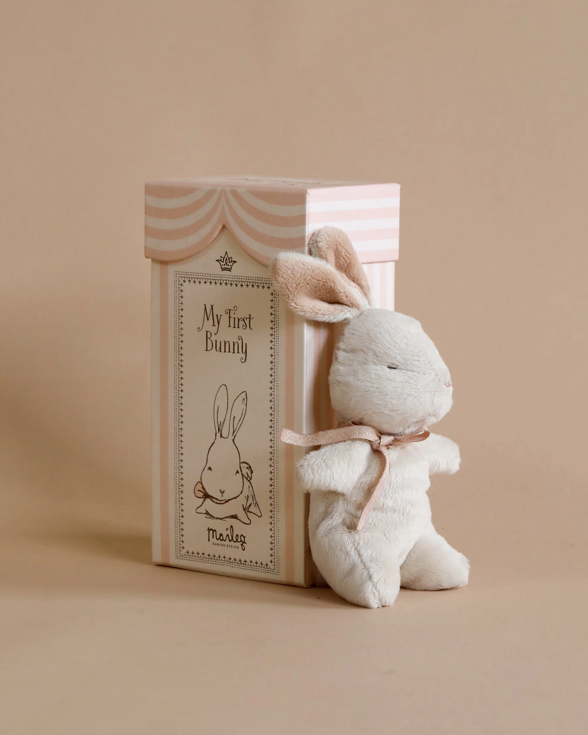 My first bunny is perfectly made for small hands. It is made in a soft plush quality and has a colored ribbon around the neck. It is packed in a beautiful giftbox where you can add the birth information inside. This is the perfect baby shower gift!