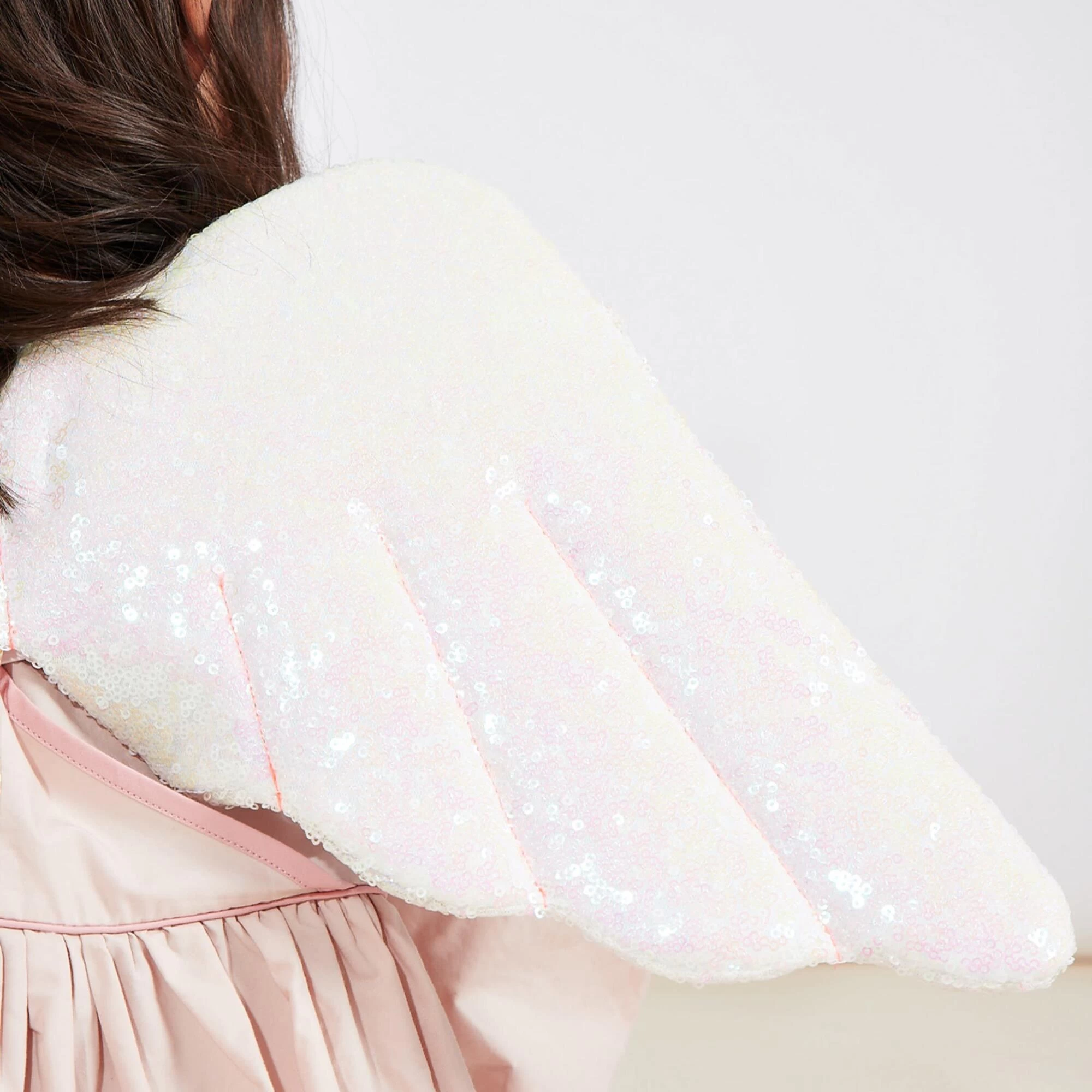 - Pink iridescent glitter sequin fabric wings with mint elastic arm straps