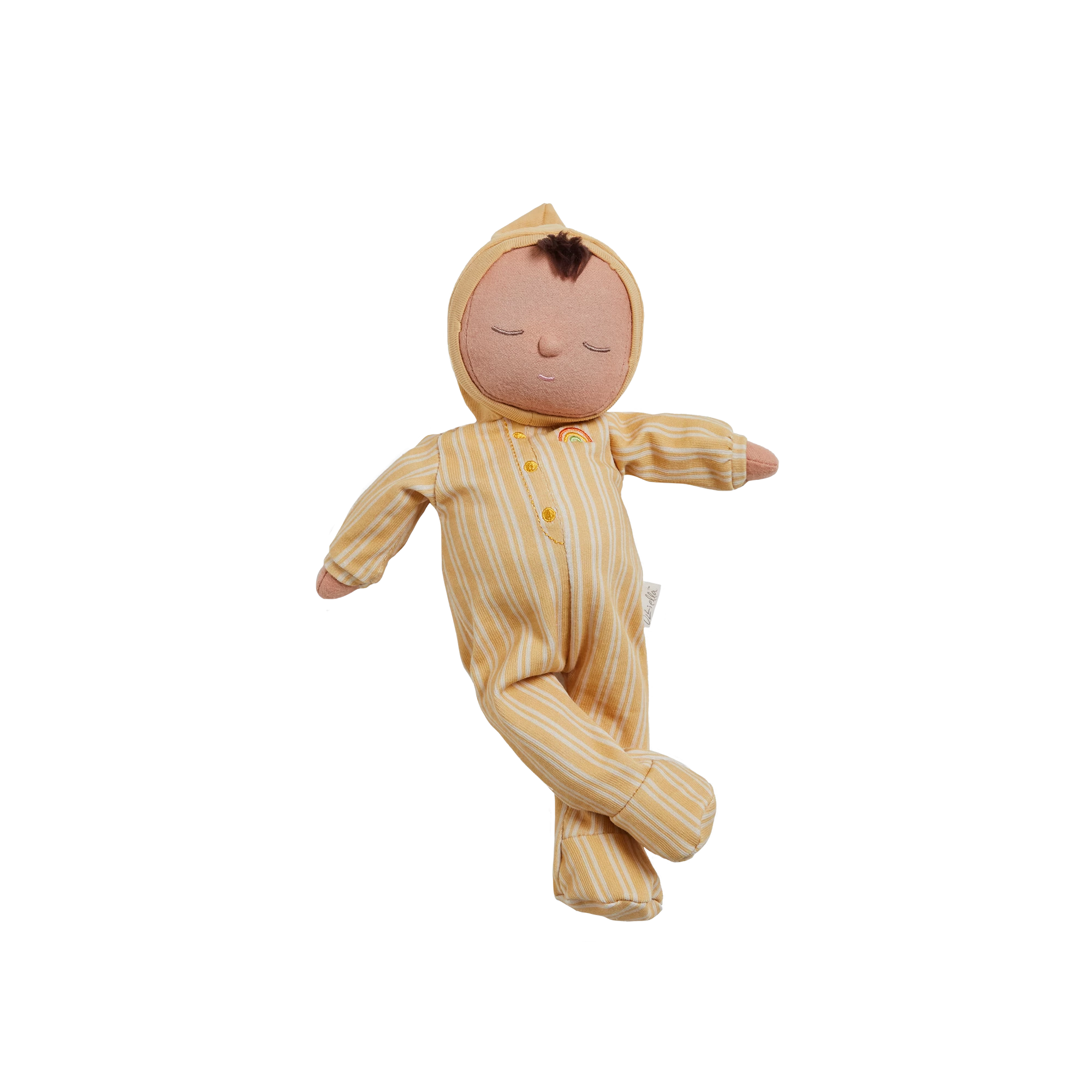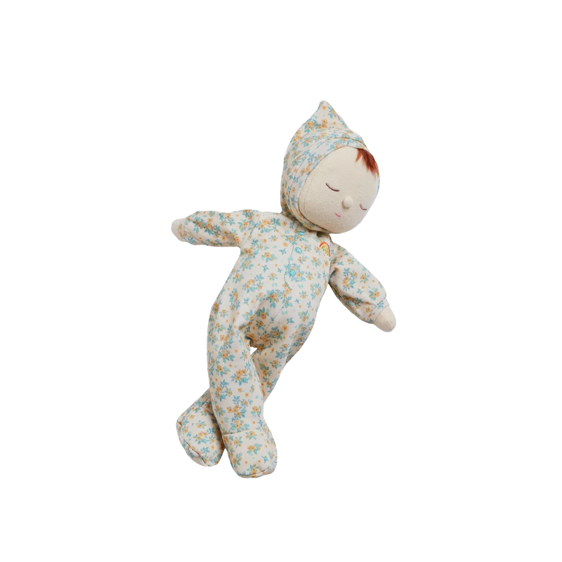 This limited-edition Daydream Dozy is made from 100% Cotton printed in our vintage inspired Goldie, print. Soft and precious, Pip Goldie is made for cuddles and play and can’t wait to snooze the days away with you! Pip Goldie is posable, made from super soft cotton and features the sweetest embroidered face with a little tuft of hair. Each Daydream Dozy Dinkum wears a non-removable suit complete with a rainbow right over their heart.