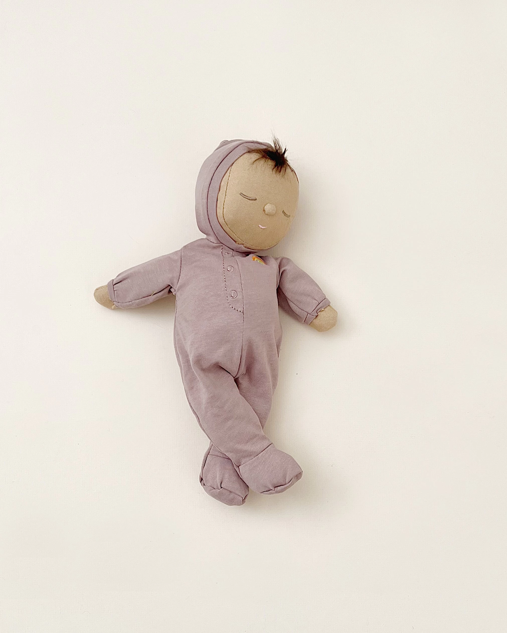 • Dozy Dinkums wear a non-removable cotton onesie with an embroidered rainbow on heart area.