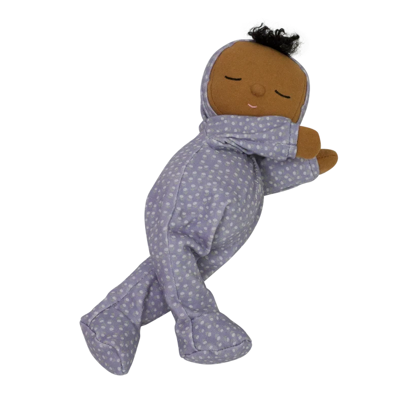 Dozy Bean is posable, made from super soft cotton, and features the sweetest embroidered face with a little tuft of hair. Each Daydream Dozy Dinkum wears a fixed suit with a rainbow right over their heart.