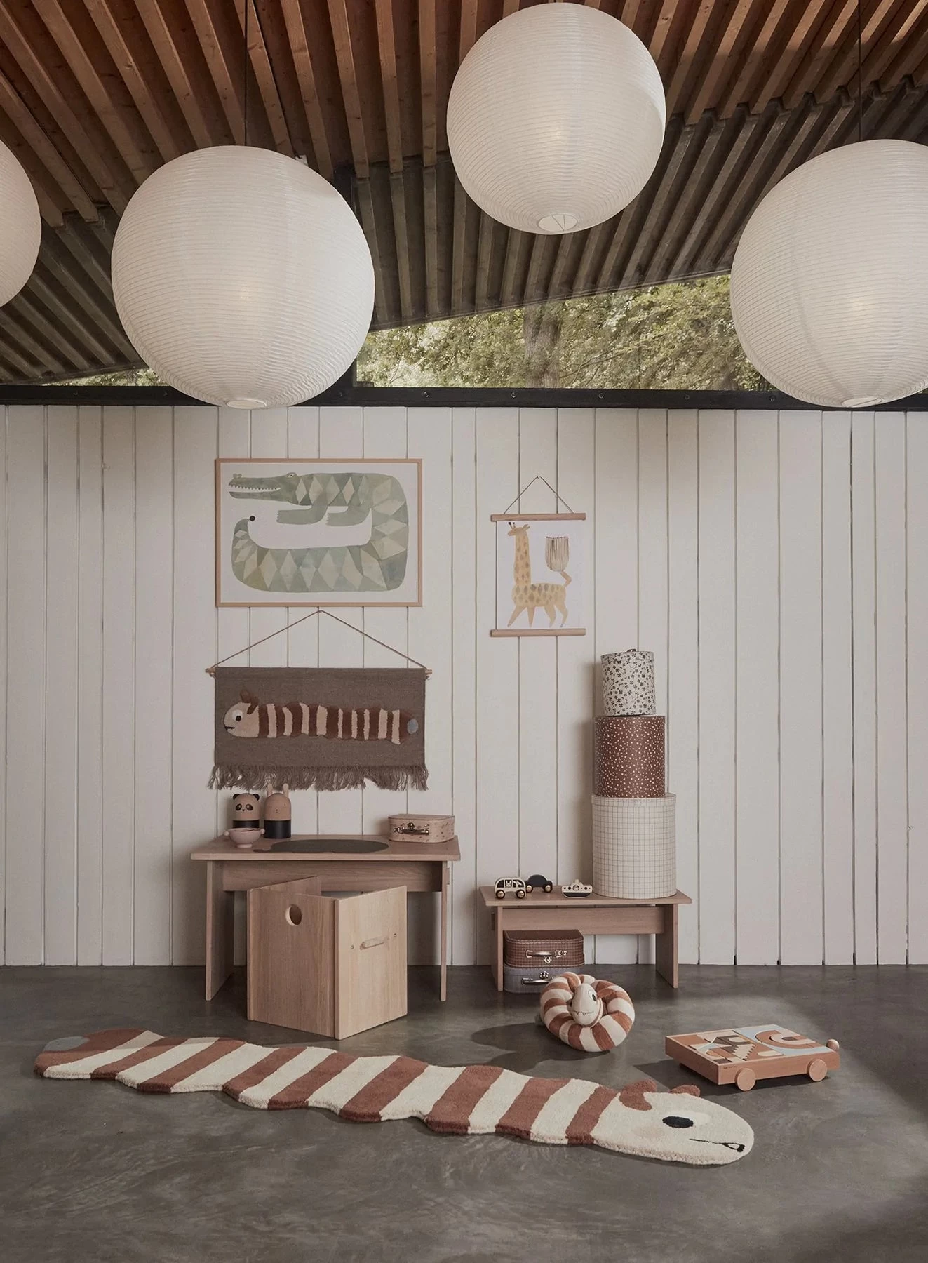 The wall rug series is a fun and playful way to decorate the children’s room. The rug is handmade in wool and cotton, and can be hung on the wall with the included stick and leather string. Hang the wall rug alone, or with other wall rugs from the series.