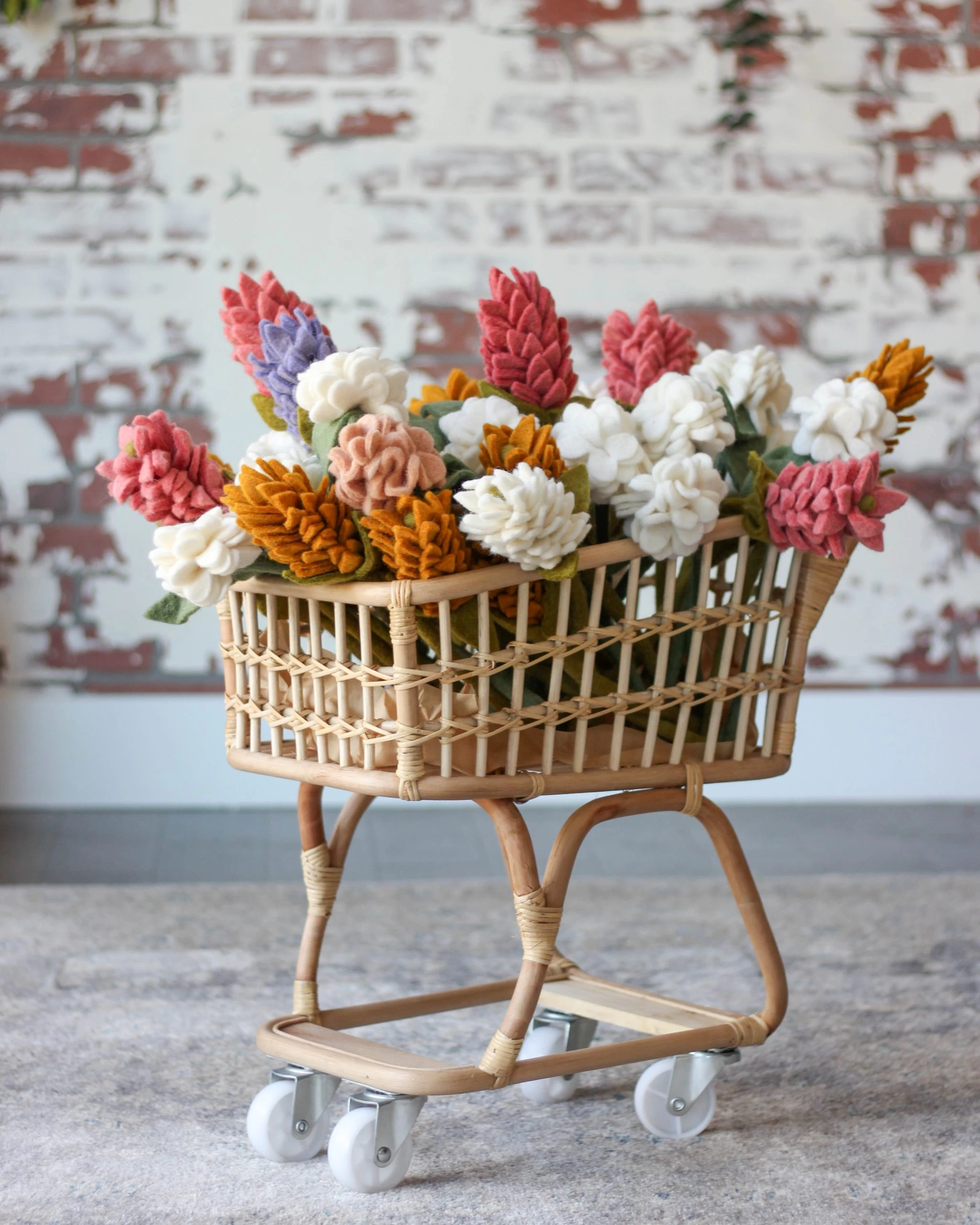 Please note, this listing is for the rattan shopping cart only. The flowers are not included.