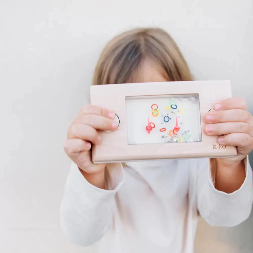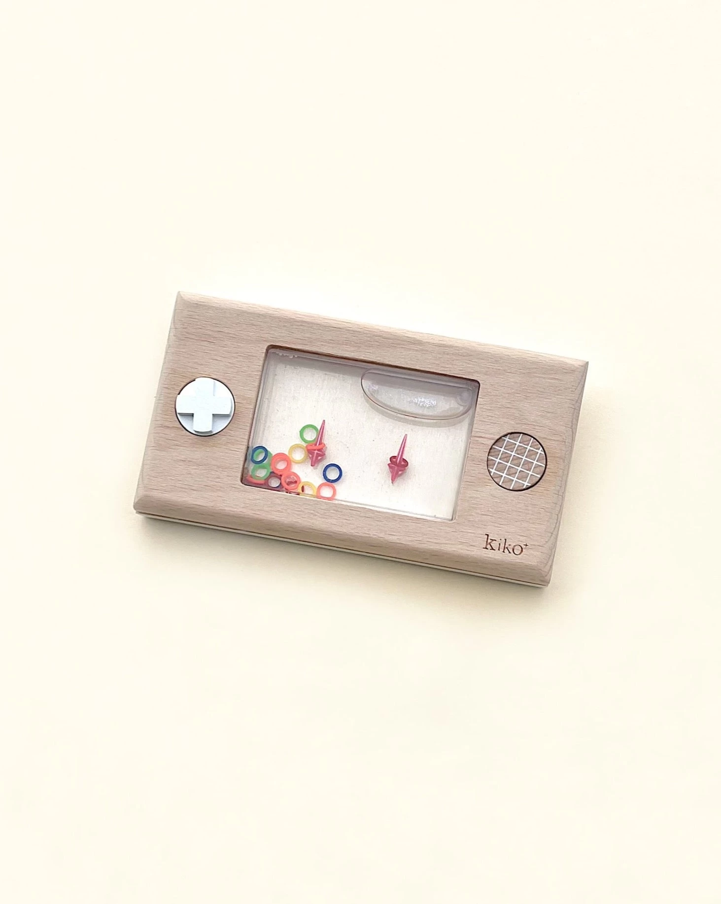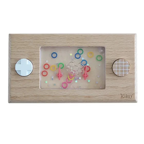 Basically a wooden Gameboy, but with no screen or yucky batteries. Get your game on with this sleek wooden version of the old-school retro water game. Use your two manual controllers (i.e. your hands) to press the buttons to try and get all of the rainbow hoops onto the two spikes.