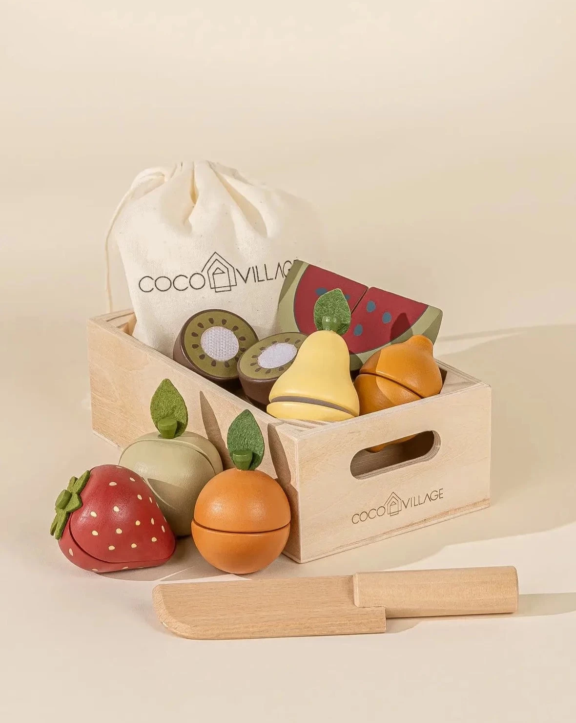 These beautiful fresh products are gonna be so good! This selection of 7 colorful fruits are a great addition to any wooden Mini-market or Kitchen. Plus, they are sliceable and come with the cutest wooden knife. Kids love to pretend play, which is perfect since imitation is an important and determining factor in the development of our little ones.