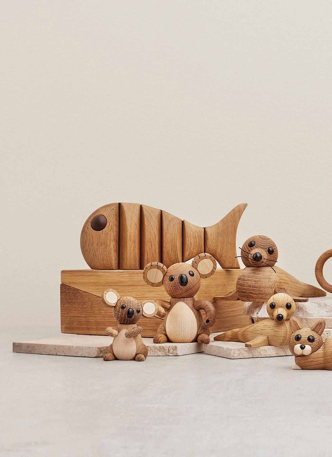 The Wood Fish is a dynamic accessory for the home. The body is split into movable parts. This gives the Wood Fish a lifelike look when you hold it in your hands and watch its soft, organic movements. A beautiful wooden figure that brings nature into your home. Also available in a small version.
