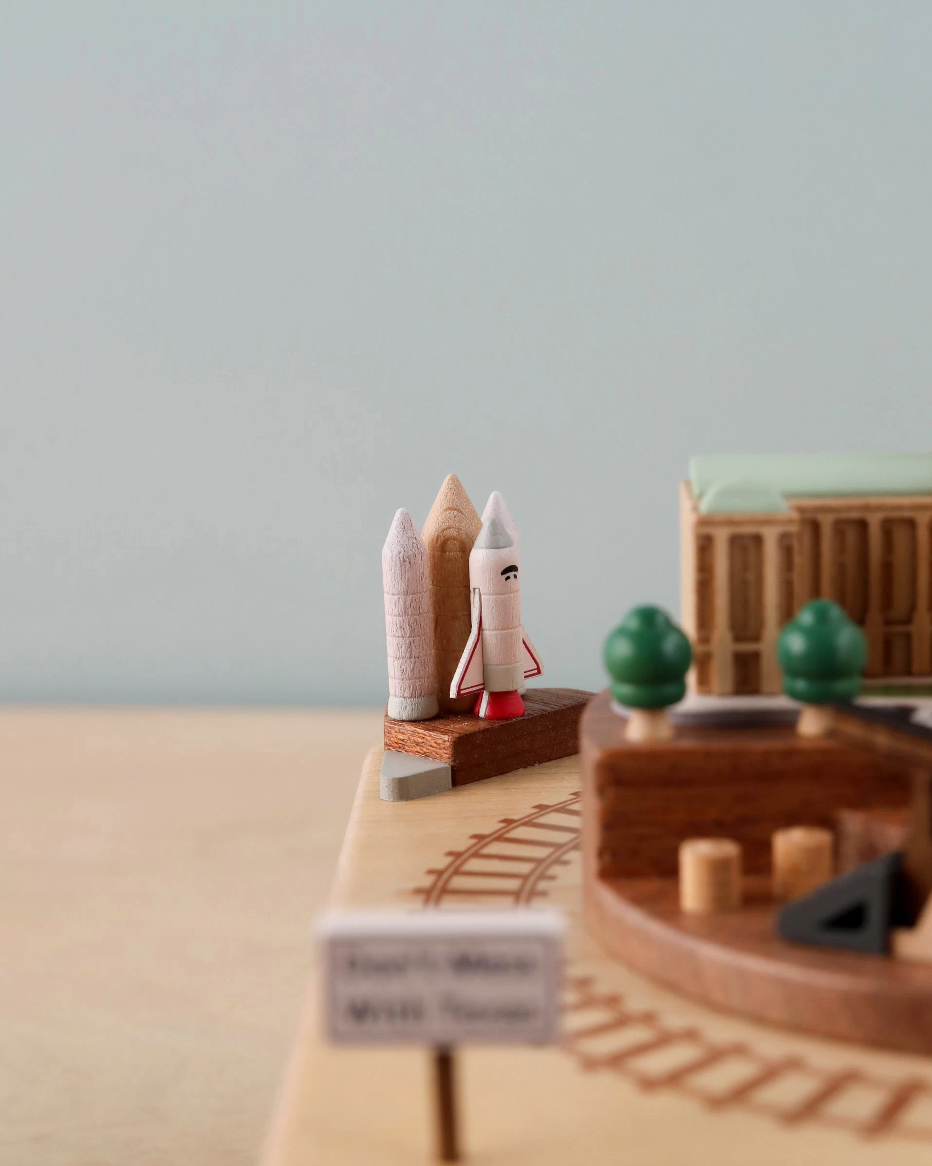 The vehicle that goes around on the music box is wrapped separately and attached to the inside of the packaging. Please remove and unwrap the vehicle before discarding the packaging.