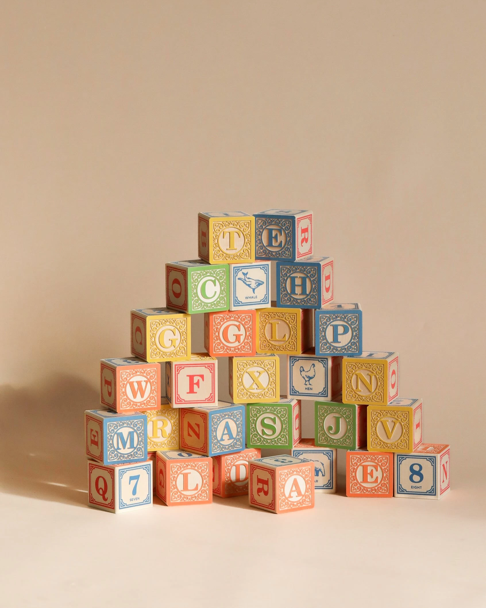 Love these blocks. Teach children to spell, sequence, and stack; sort, build, and match. Four full alphabets, colorful numbers, math symbols, plus a menagerie of hand-crafted animals. Detailed embossing on two sides of each block.