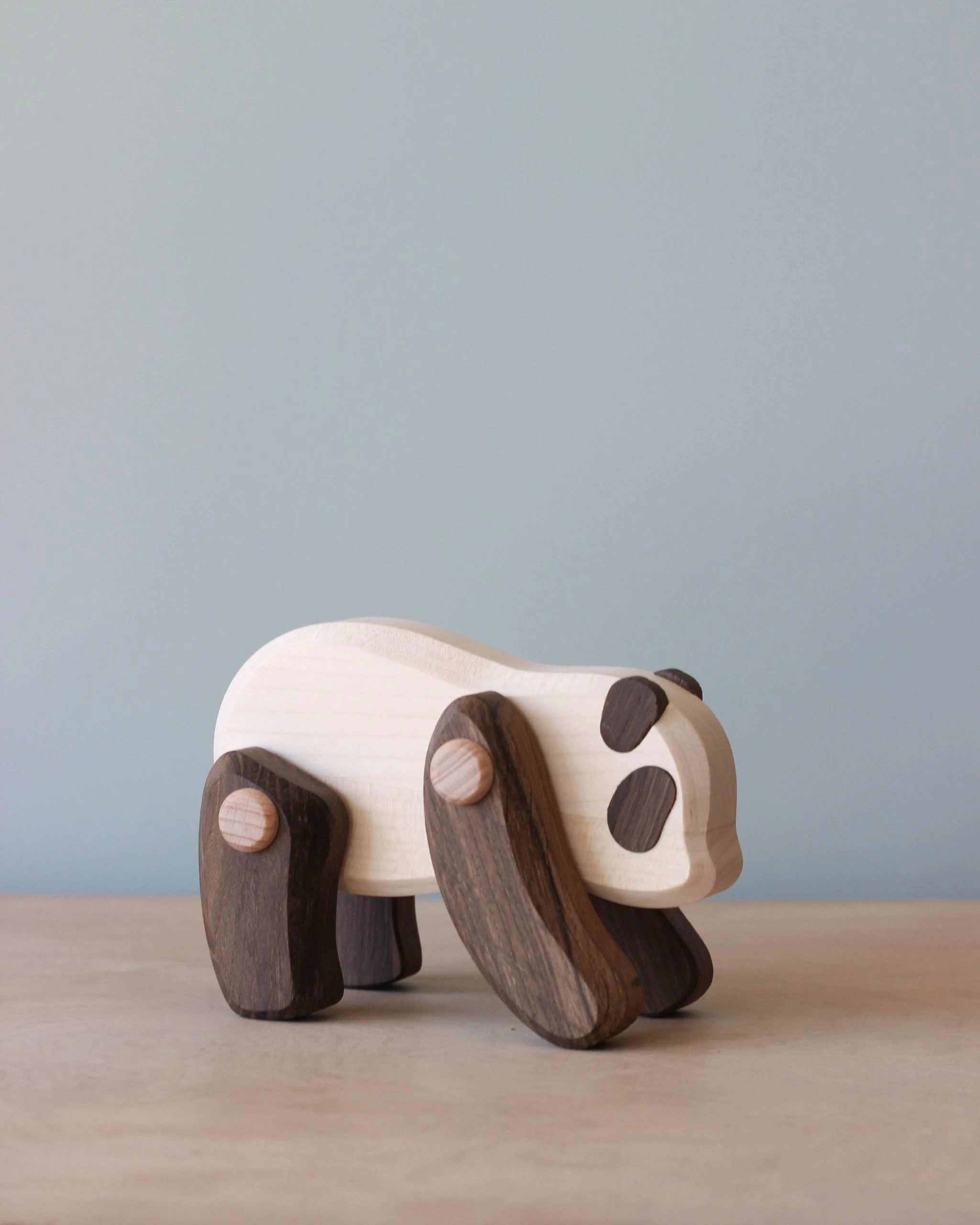 This adorable wooden panda is lightweight and easy to play with. The limbs can be moved so your child can imitate the real movements of this endangered animal. Made for ages 1.5+ years and up.
