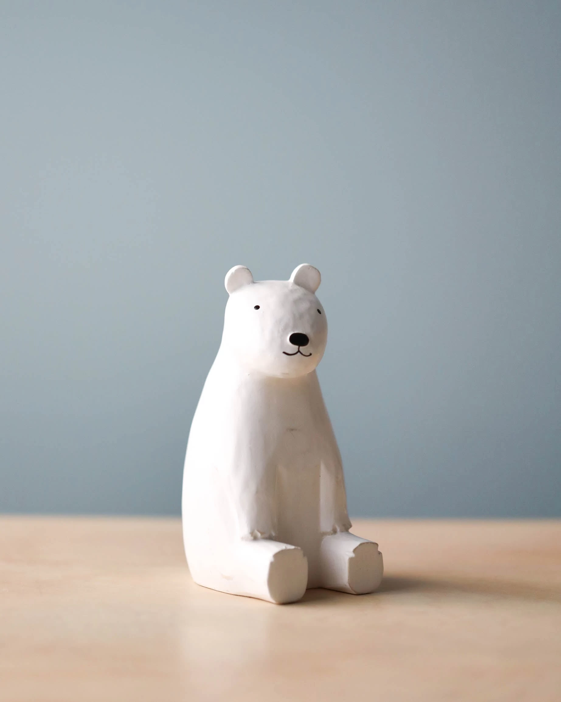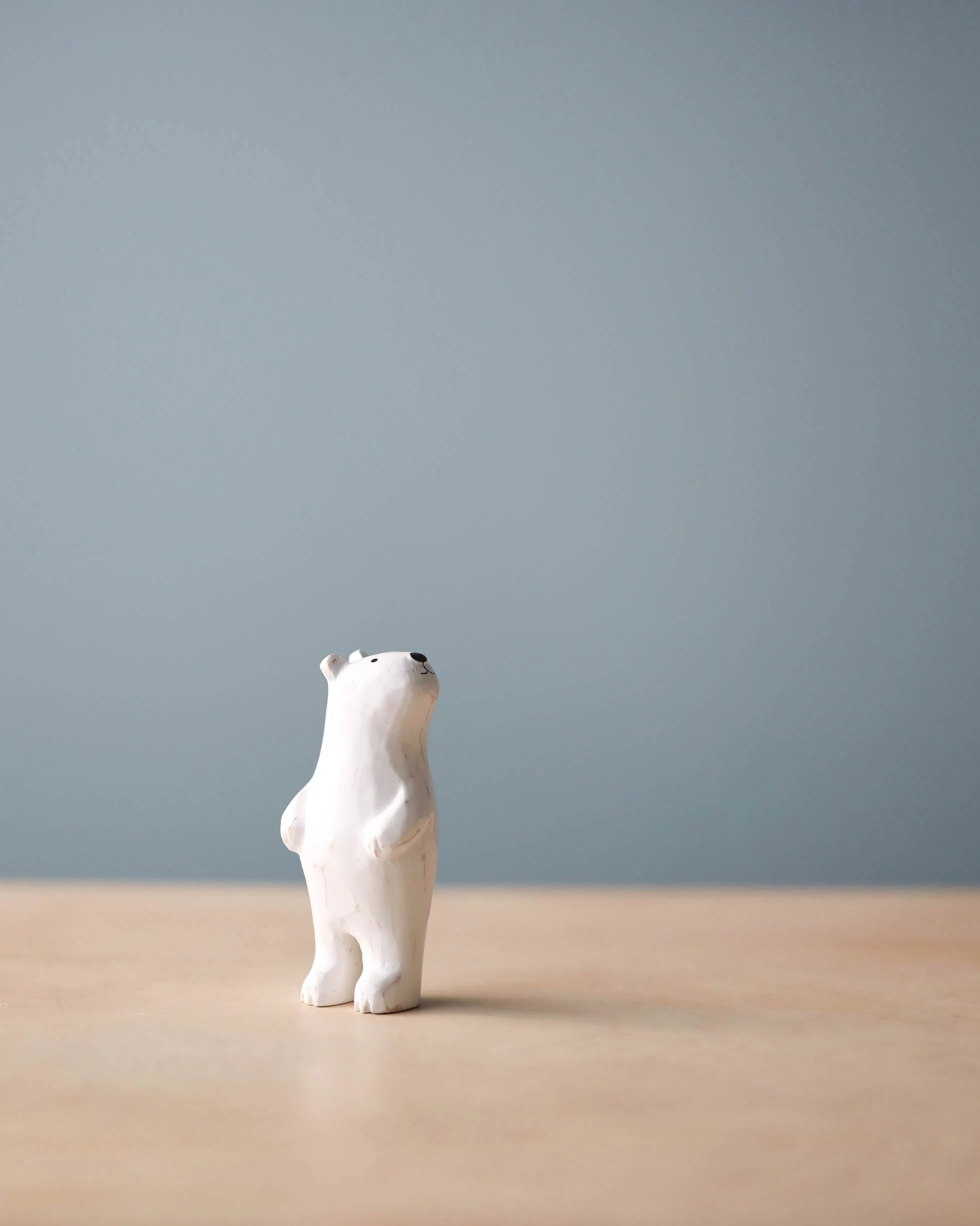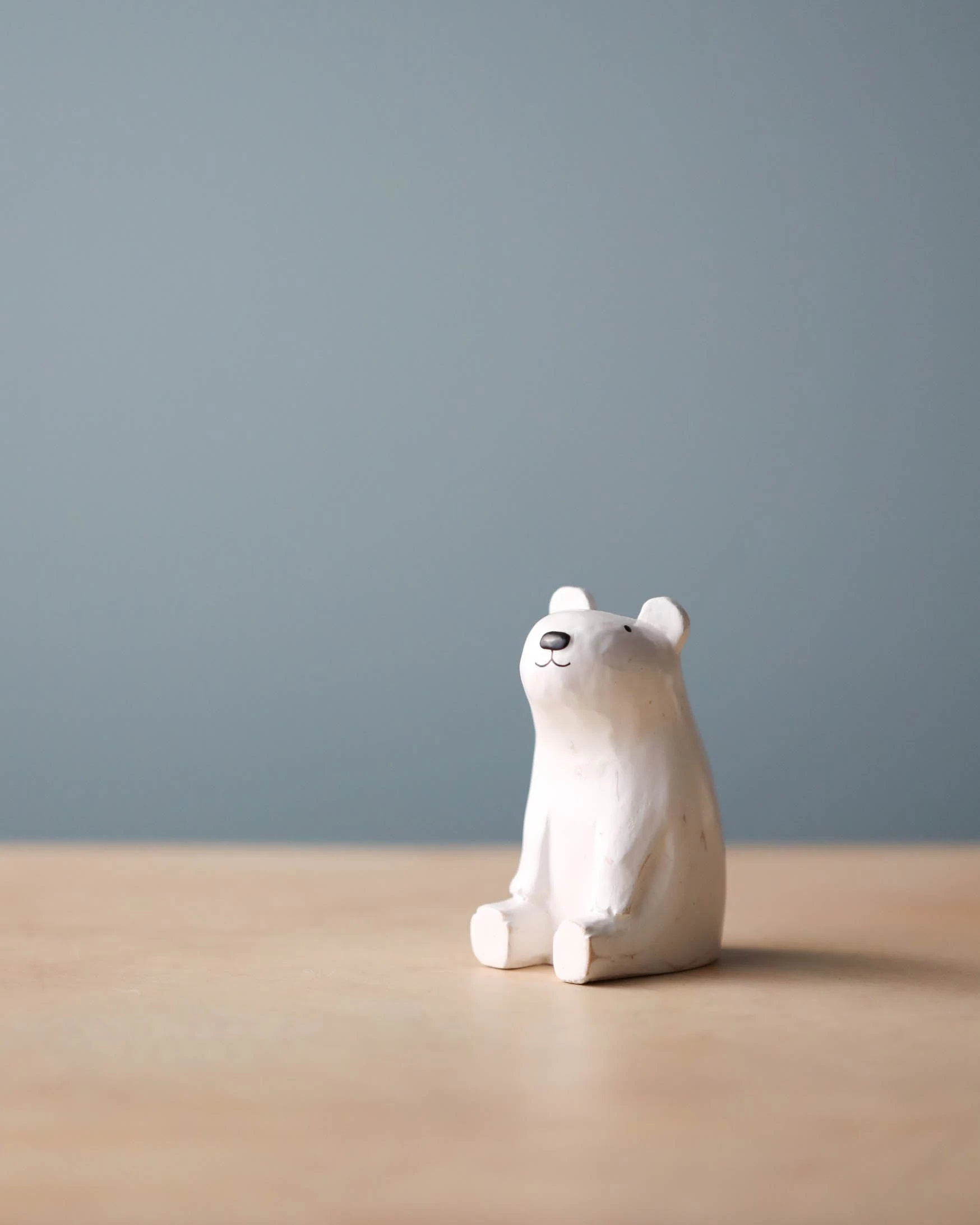 Each animal is hand carved from a soft light wood and then hand-painted with the sweetest expressions and patterns. Due to their handcrafted nature, each animal is slightly different.