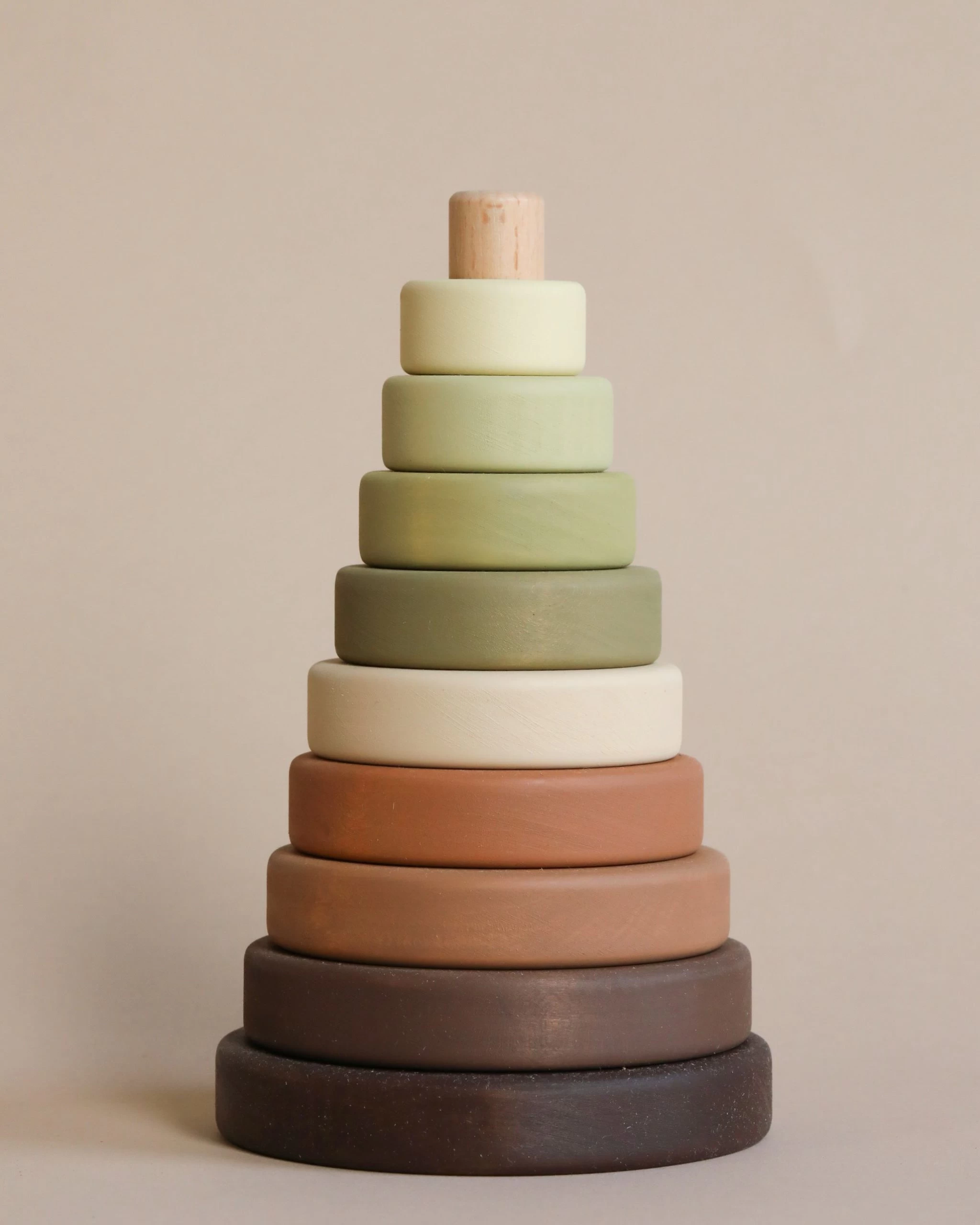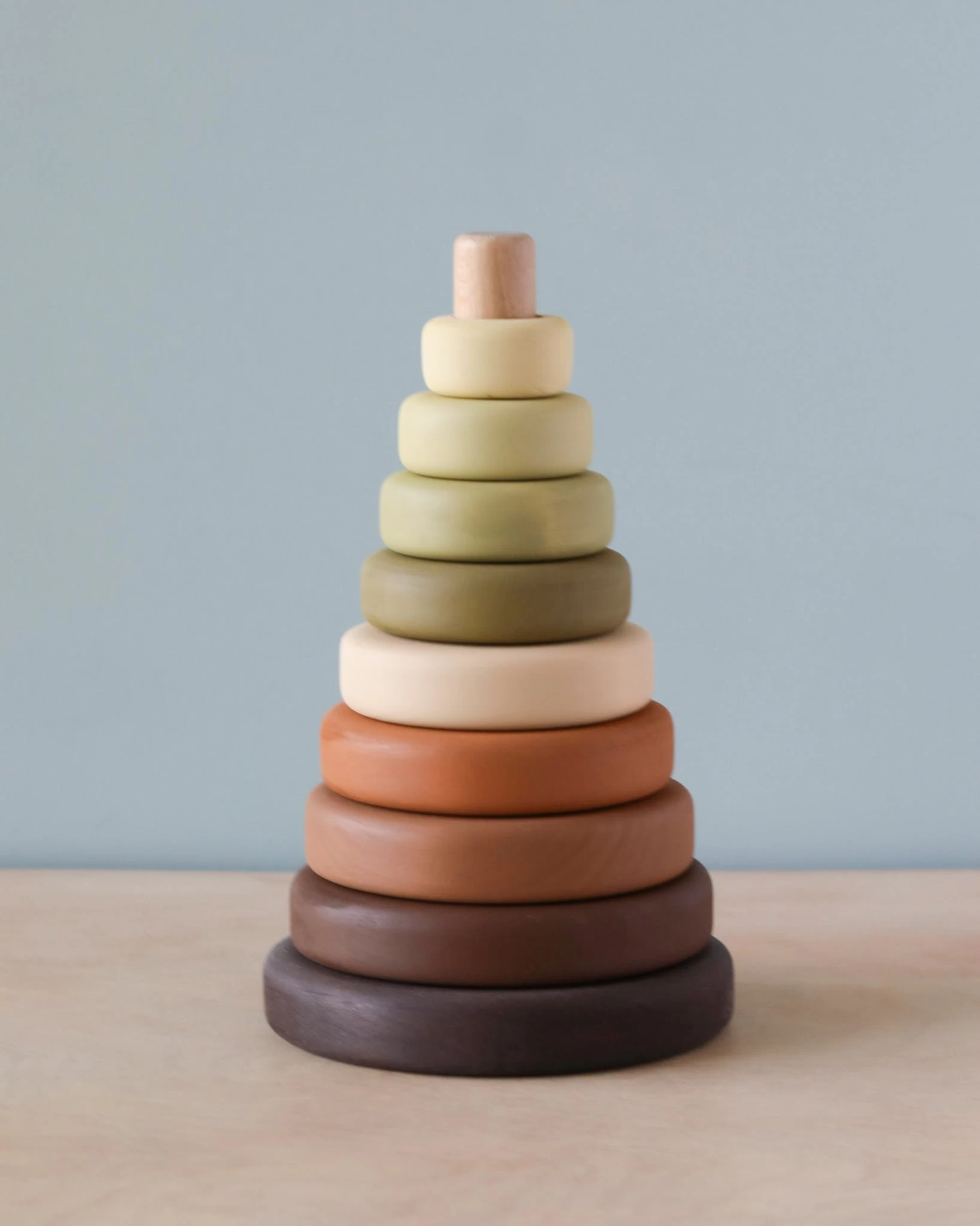 Handmade by Sabo Concept in Ukraine and painted with non-toxic, water-based paint. This stacking toy is great for hand-eye coordination.