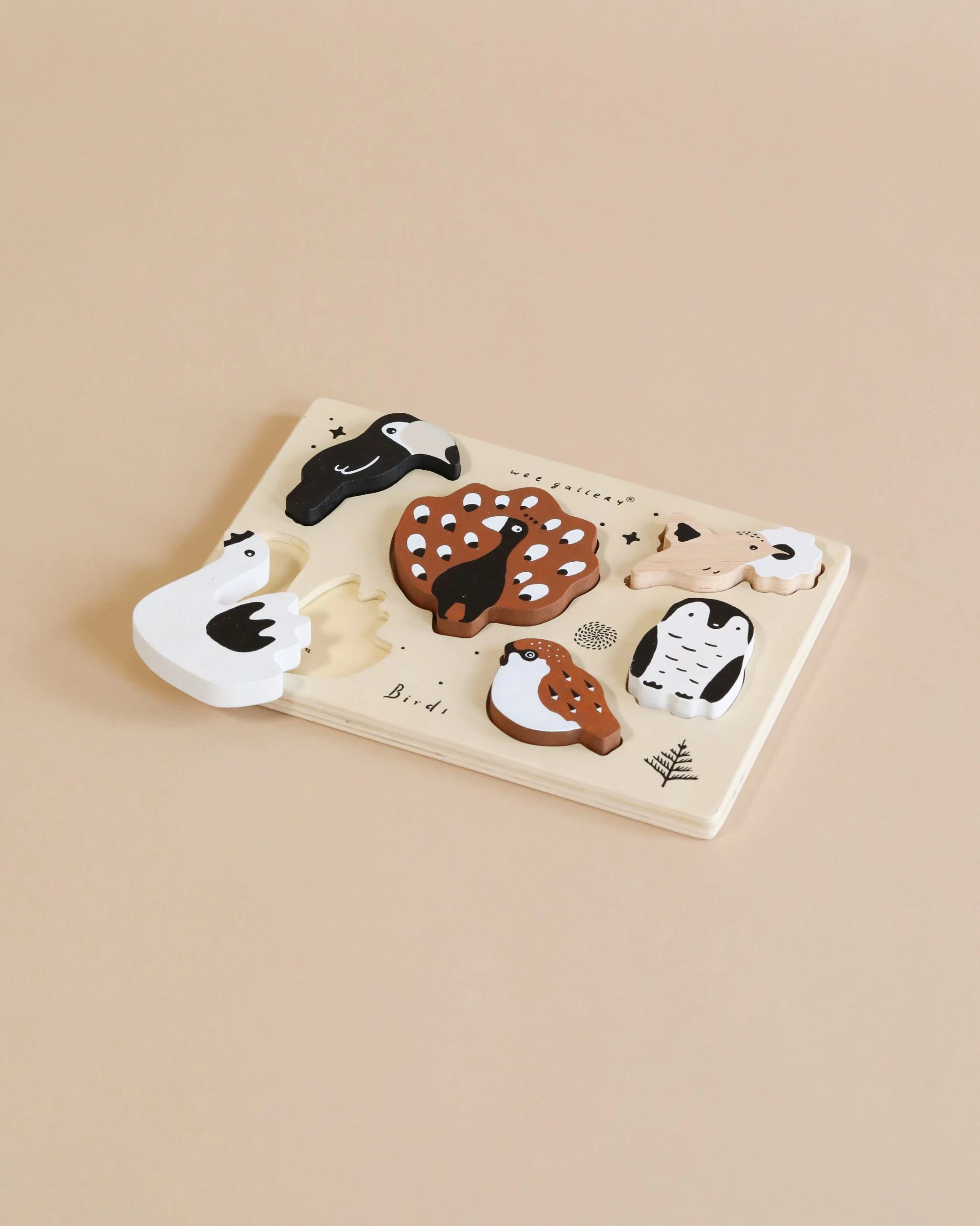 This six piece Wooden Puzzle is perfect for so many hours of play! Solving the tray puzzle is just the beginning. You can also use the adorable wooden animals as play time characters in this themed Birds set. For more educational fun, teach your child to recognize each type of bird.